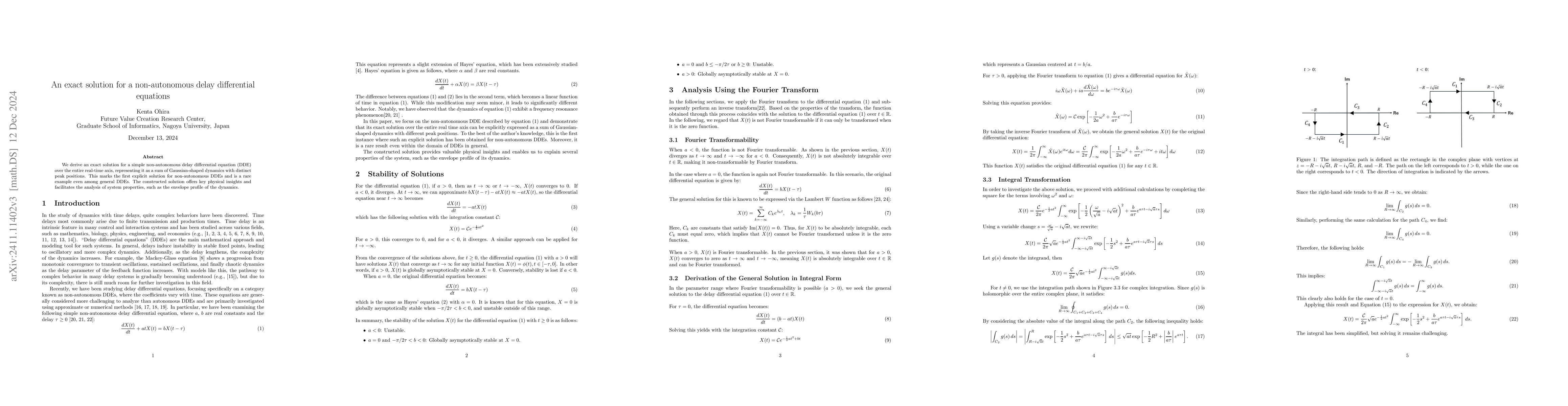 This paper presents the first exact solution for a simple non-autonomous delay differential equation, expressed as a sum of Gaussian-shaped dynamics. This explicit solution provides valuable physical insights and aids in analyzing system properties, including the dynamics' envelope profile.