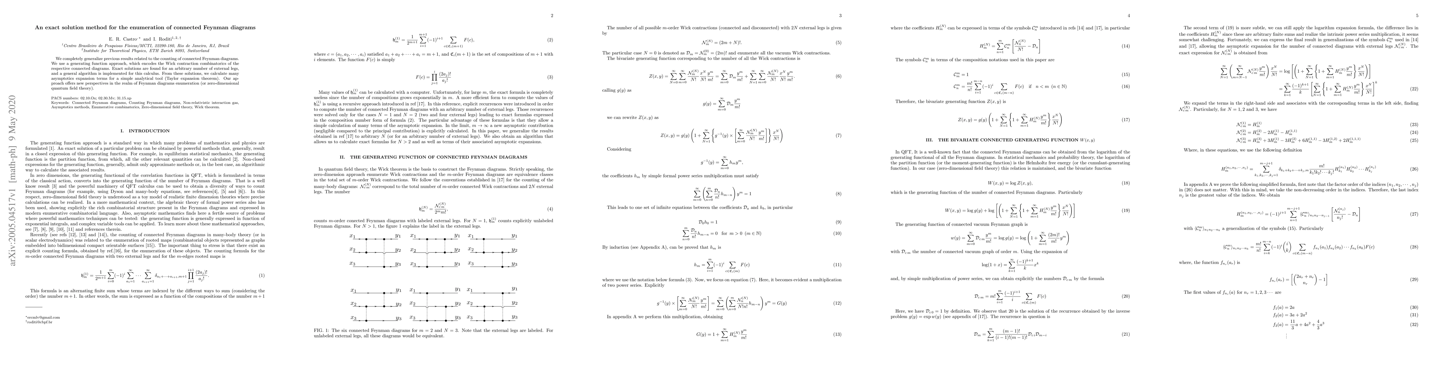 We completely generalize previous results related to the counting of connected Feynman diagrams. We use a generating function approach, which encodes the Wick contraction combinatorics of the respective connected diagrams. Exact solutions are found for an arbitrary number of external legs, and a general algorithm is implemented for this calculus. From these solutions, we calculate many asymptotics expansion terms for a simple analytical tool (Taylor expansion theorem). Our approach offers new perspectives in the realm of Feynman diagrams enumeration (or zero-dimensional quantum field theory).