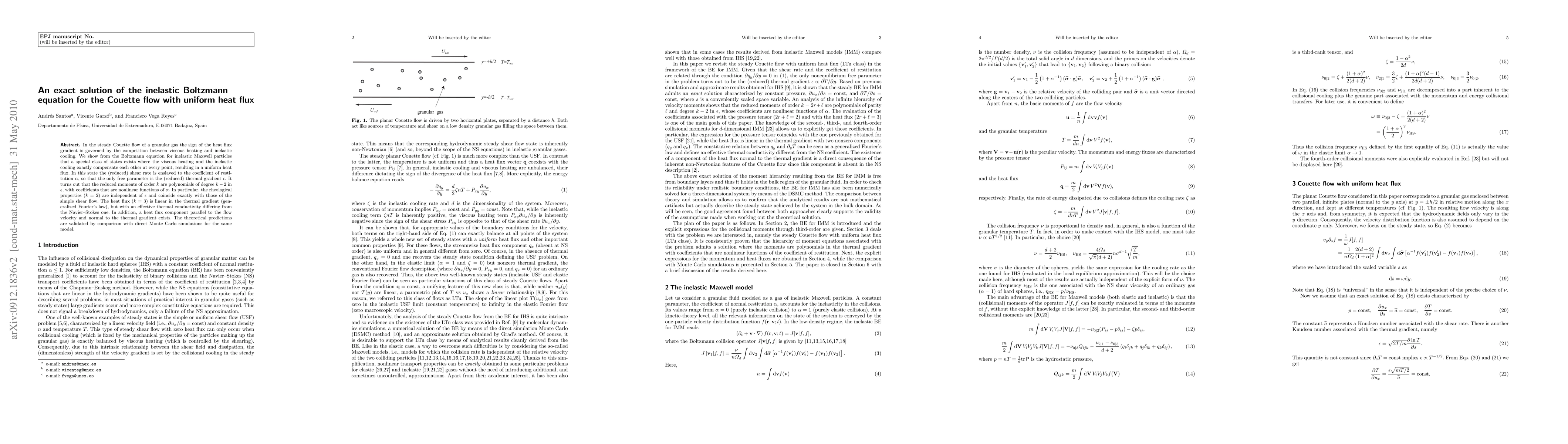 This paper presents an exact solution to the inelastic Boltzmann equation for Couette flow of granular gas, showing that viscous heating and inelastic cooling can balance to produce a uniform heat flux. The theoretical results are validated by direct Monte Carlo simulations, revealing unique rheological and thermal properties.