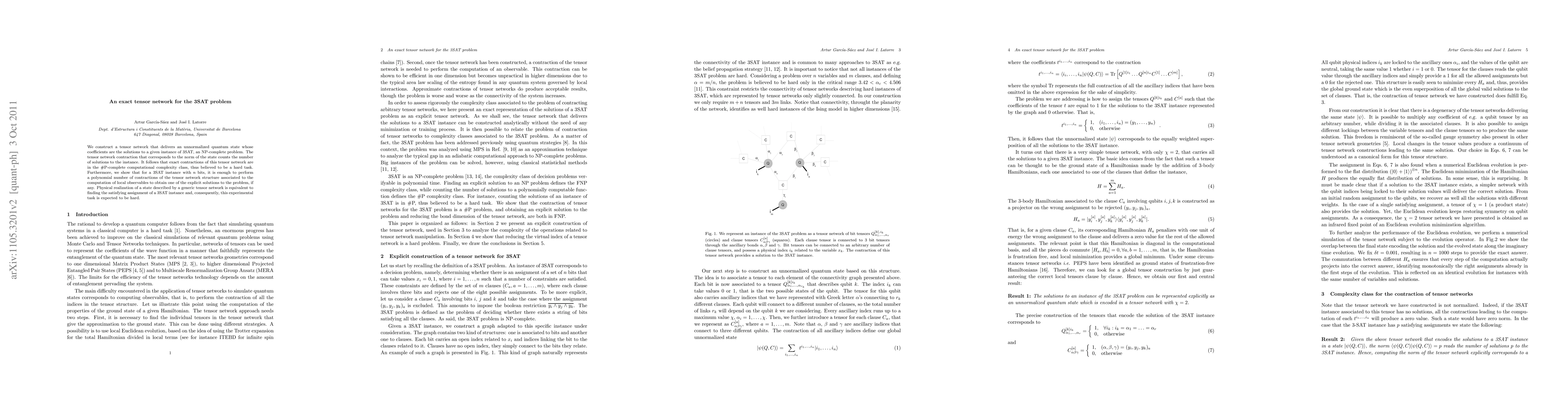 This paper constructs a tensor network representing a quantum state whose coefficients correspond to solutions of a 3SAT problem, an NP-complete issue. Exact contractions of the tensor network are #P-complete, indicating a computationally challenging task. The authors demonstrate that a polynomial number of tensor network contractions can yield explicit solutions for 3SAT instances, highlighting the inherent difficulty in physically realizing such states.