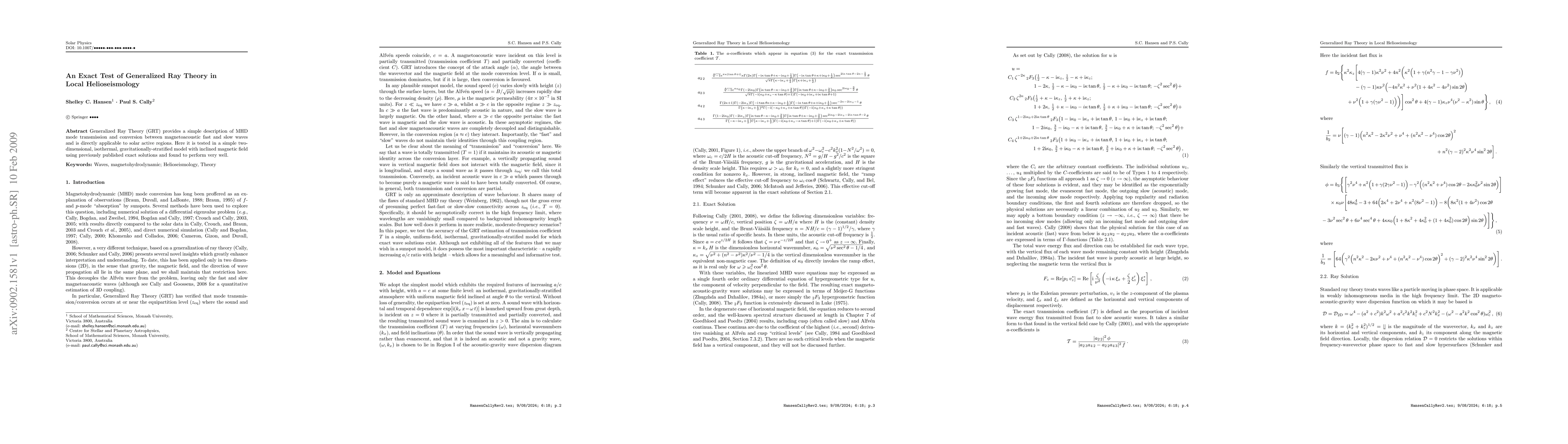 Generalized Ray Theory (GRT) provides a simple description of MHD mode transmission and conversion between magnetoacoustic fast and slow waves and is directly applicable to solar active regions. Here it is tested in a simple two-dimensional, isothermal, gravitationally-stratified model with inclined magnetic field using previously published exact solutions and found to perform very well.