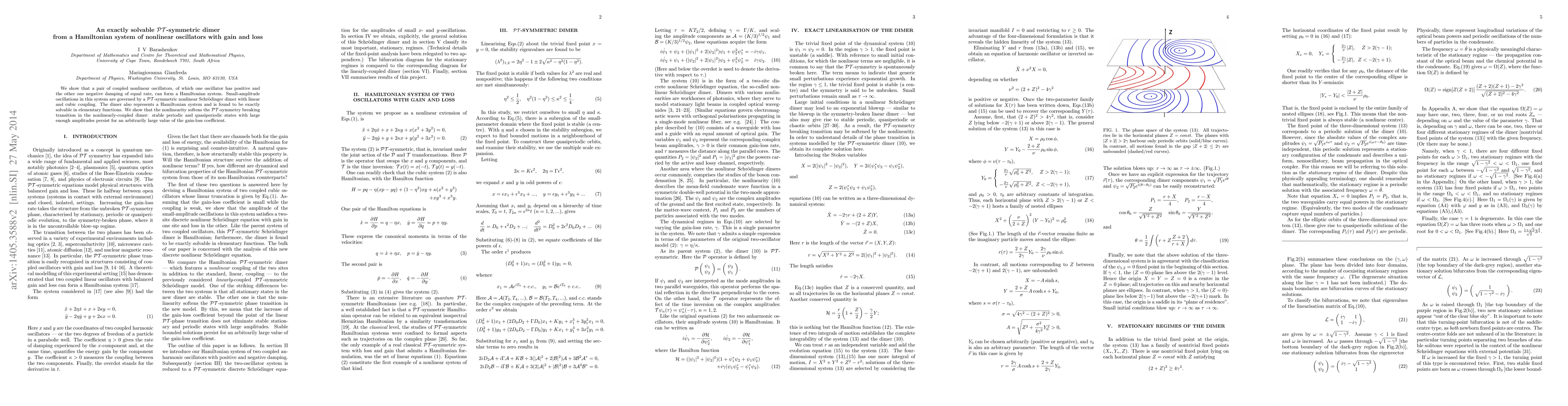 We show that a pair of coupled nonlinear oscillators, of which one oscillator has positive and the other one negative damping of equal rate, can form a Hamiltonian system. Small-amplitude oscillations in this system are governed by a $\mathcal{PT}$-symmetric nonlinear Schr\"odinger dimer with linear and cubic coupling. The dimer also represents a Hamiltonian system and is found to be exactly solvable in elementary functions. We show that the nonlinearity softens the $\mathcal{PT}$-symmetry breaking transition in the nonlinearly-coupled dimer: stable periodic and quasiperiodic states with large enough amplitudes persist for an arbitrarily large value of the gain-loss coefficient.