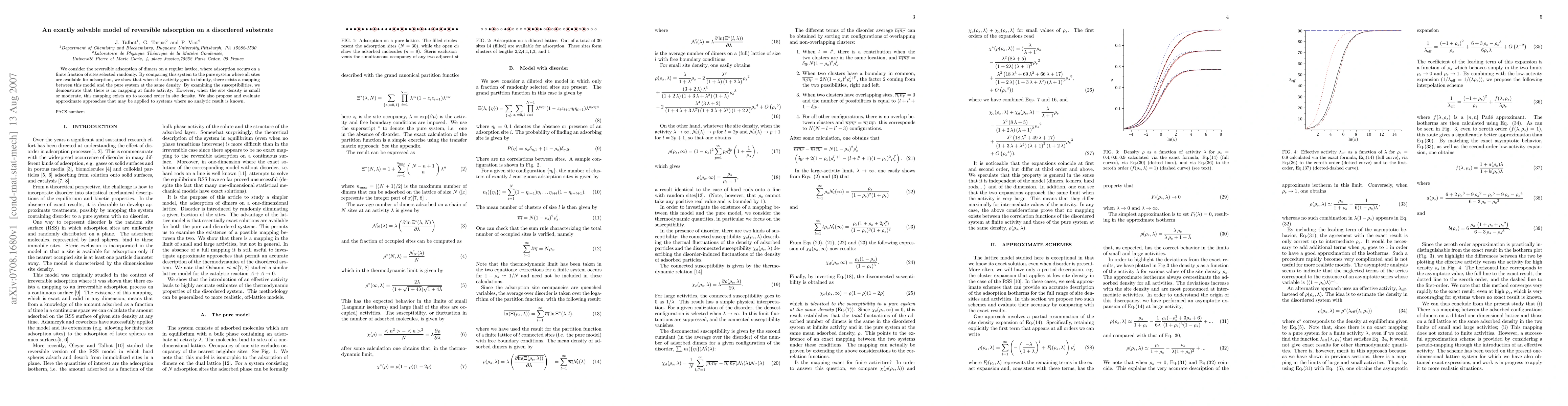 We consider the reversible adsorption of dimers on a regular lattice, where adsorption occurs on a finite fraction of sites selected randomly. By comparing this system to the pure system where all sites are available for adsorption, we show that when the activity goes to infinity, there exists a mapping between this model and the pure system at the same density. By examining the susceptibilities, we demonstrate that there is no mapping at finite activity. However, when the site density is small or moderate, this mapping exists up to second order in site density. We also propose and evaluate approximate approaches that may be applied to systems where no analytic result is known.