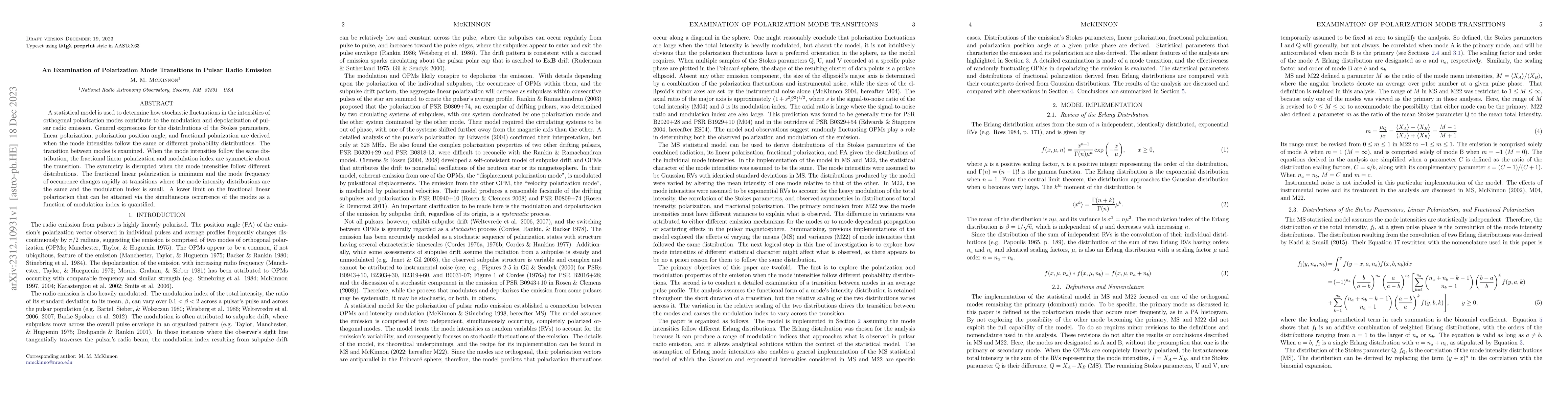 A statistical model is used to determine how stochastic fluctuations in the intensities of orthogonal polarization modes contribute to the modulation and depolarization of pulsar radio emission. General expressions for the distributions of the Stokes parameters, linear polarization, polarization position angle, and fractional polarization are derived when the mode intensities follow the same or different probability distributions. The transition between modes is examined. When the mode intensities follow the same distribution, the fractional linear polarization and modulation index are symmetric about the transition. The symmetry is disrupted when the mode intensities follow different distributions. The fractional linear polarization is minimum and the mode frequency of occurrence changes rapidly at transitions where the mode intensity distributions are the same and the modulation index is small. A lower limit on the fractional linear polarization that can be attained via the simultaneous occurrence of the modes as a function of modulation index is quantified.