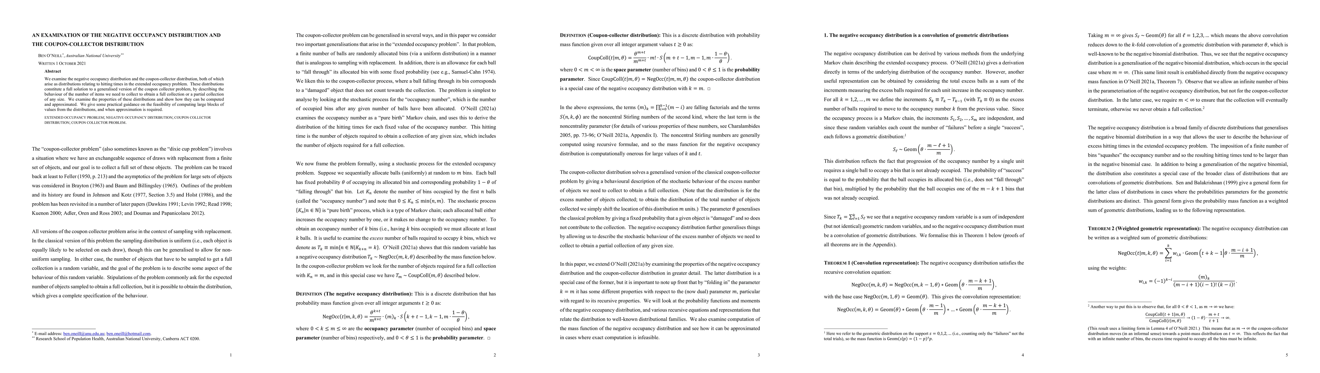 We examine the negative occupancy distribution and the coupon-collector distribution, both of which arise as distributions relating to hitting times in the extended occupancy problem. These distributions constitute a full solution to a generalised version of the coupon collector problem, by describing the behaviour of the number of items we need to collect to obtain a full collection or a partial collection of any size. We examine the properties of these distributions and show how they can be computed and approximated. We give some practical guidance on the feasibility of computing large blocks of values from the distributions, and when approximation is required.