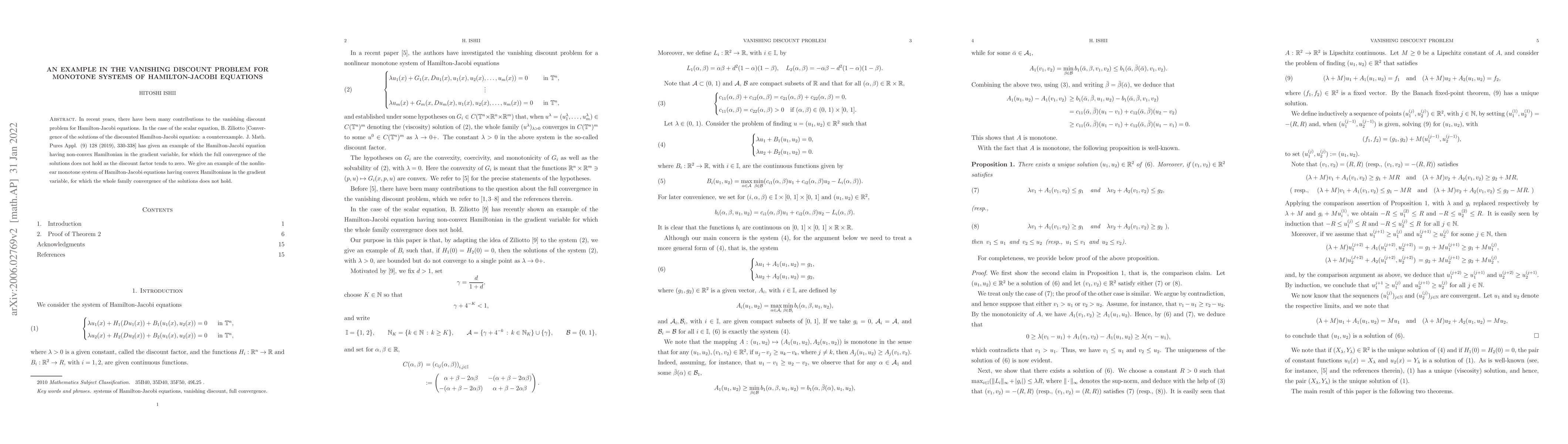 This paper presents an example demonstrating that even for monotone systems of Hamilton-Jacobi equations with convex Hamiltonians, the full convergence of solutions may fail as the discount factor approaches zero, extending the vanishing discount problem beyond scalar equations.