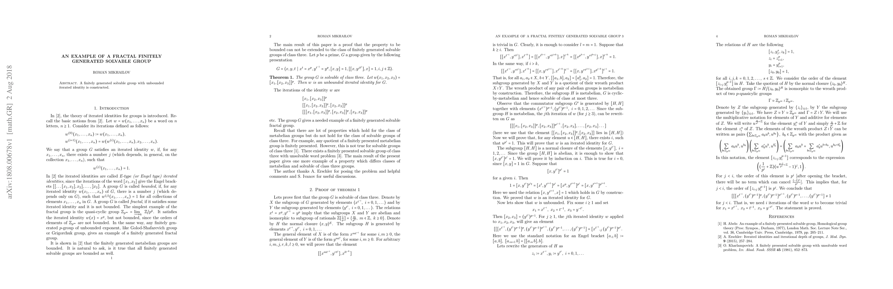 A finitely generated solvable group with unbounded iterated identity is constructed.