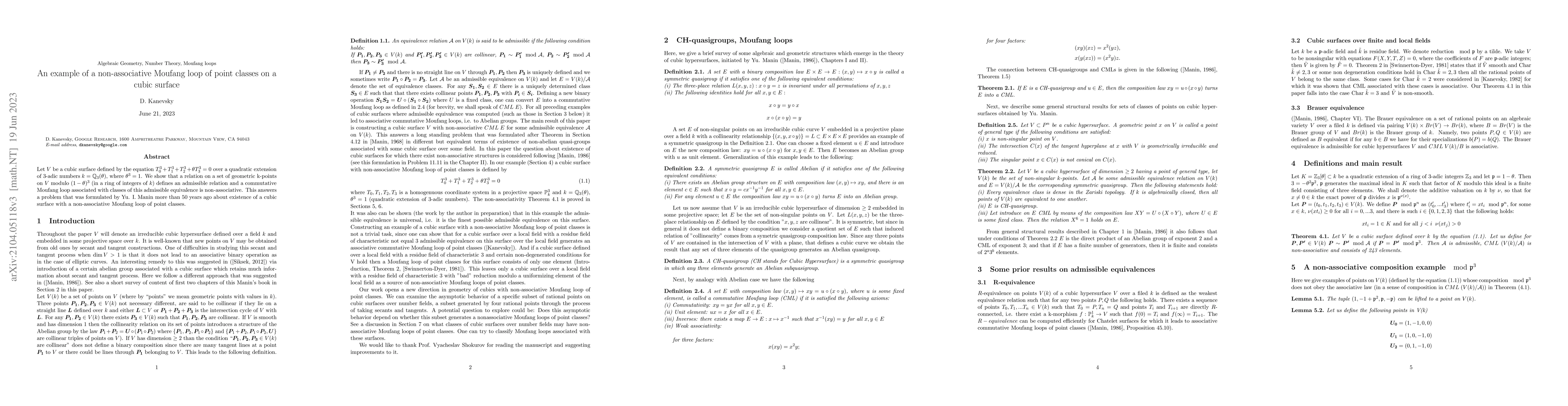 This paper demonstrates the existence of a non-associative Moufang loop formed from geometric k-points on a cubic surface defined over a quadratic extension of 3-adic numbers, solving a longstanding problem posed by Yu. I. Manin. The loop is derived from a specific relation on the set of points modulo $(1-\theta)^3$.