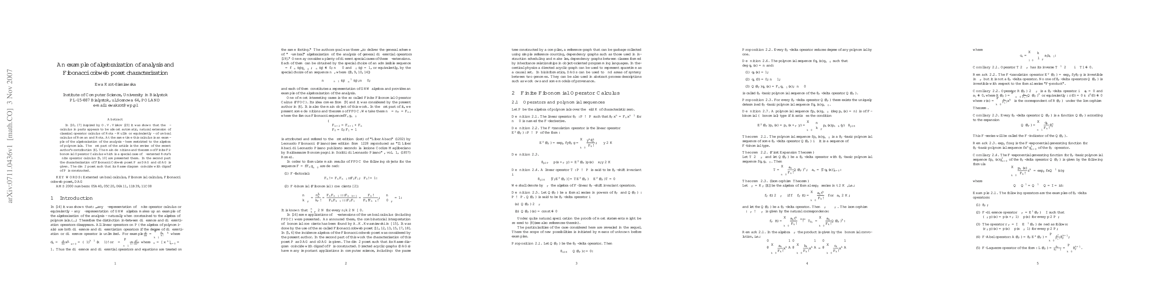 In recent Kwasniewski's papers inspired by O. V. Viskov it was shown that the $\psi$-calculus in parts appears to be almost automatic, natural extension of classical operator calculus of Rota - Mullin or equivalently - of umbral calculus of Roman and Rota. At the same time this calculus is an example of the algebraization of the analysis - here restricted to the algebra of polynomials. The first part of the article is the review of the recent author's contribution. The main definitions and theorems of Finite Fibonomial Operator Calculus which is a special case of $\psi$-extented Rota's finite operator calculus are presented there. In the second part the characterization of Fibonacci Cobweb poset P as DAG and oDAG is given. The dim 2 poset such that its Hasse diagram coincide with digraf of P is constructed.
