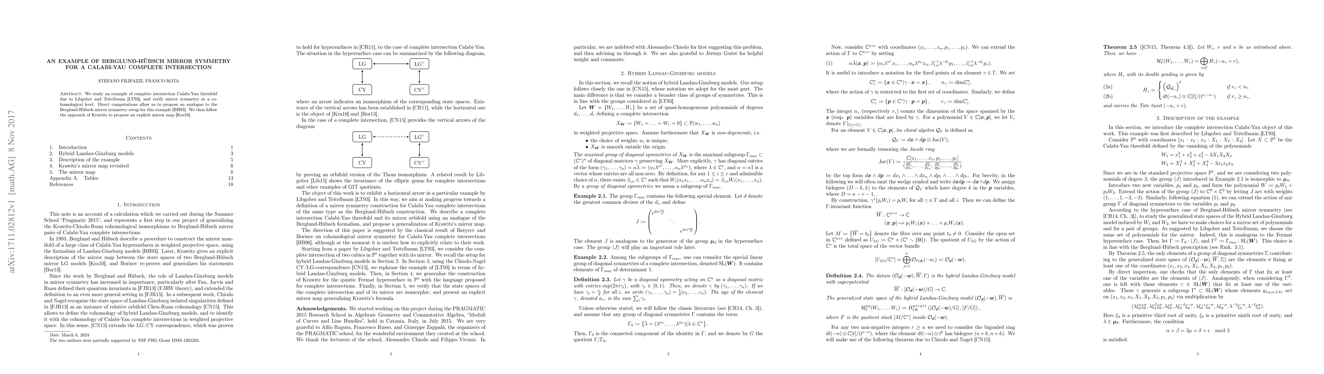 We study an example of complete intersection Calabi-Yau threefold due to Libgober and Teitelbaum arXiv:alg-geom/9301001, and verify mirror symmetry at a cohomological level. Direct computations allow us to propose an analogue to the Berglund-H\"ubsch mirror symmetry setup for this example arXiv:hep-th/9201014. We then follow the approach of Krawitz to propose an explicit mirror map arXiv:0906.0796.
