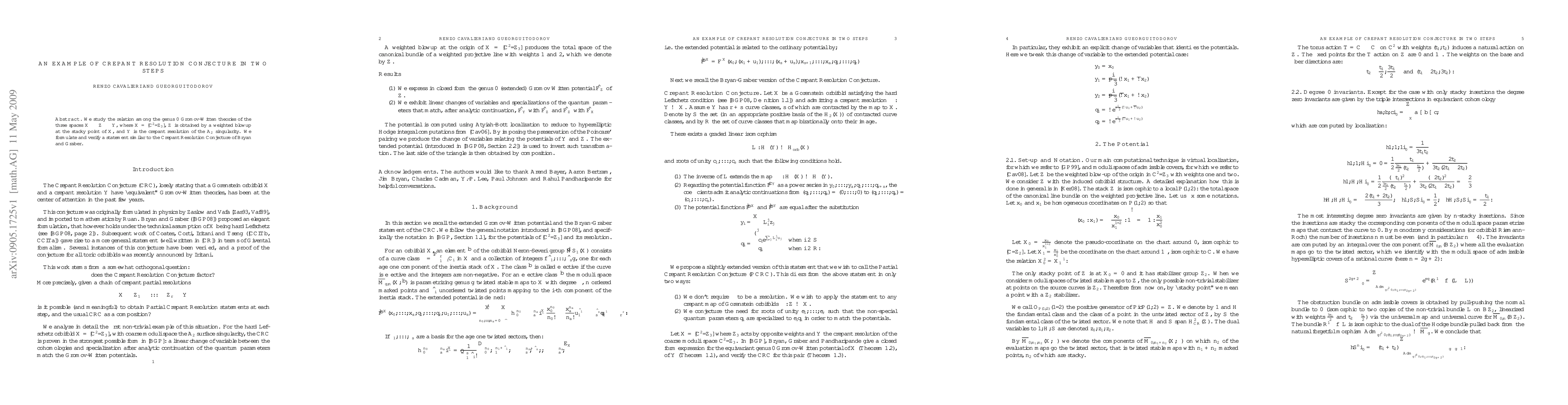 This paper investigates the genus 0 Gromov-Witten theories of spaces $\mathcal{X}$, $\mathcal{Z}$, and $Y$, with $\mathcal{X}=[\c^2/\z_3]$, $\mathcal{Z}$ formed via a weighted blowup, and $Y$ the crepant resolution of an $A_2$ singularity, to verify a statement akin to the Crepant Resolution Conjecture.