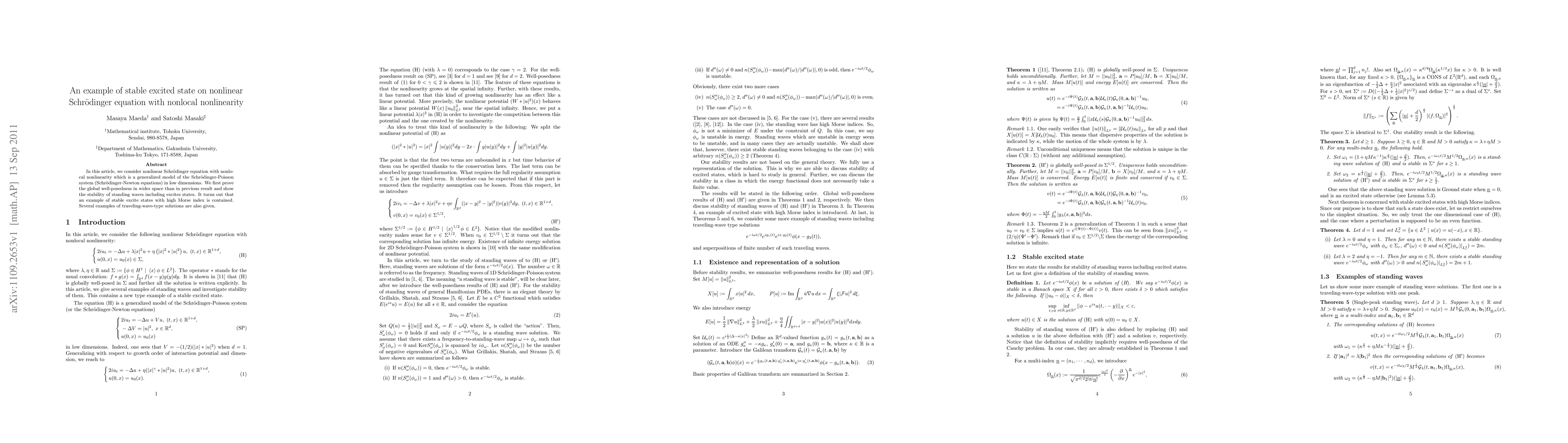 This paper investigates the nonlinear Schrödinger equation with nonlocal nonlinearity, proving global well-posedness and stability of standing waves, including stable excited states with high Morse index. It also provides examples of traveling-wave-type solutions.