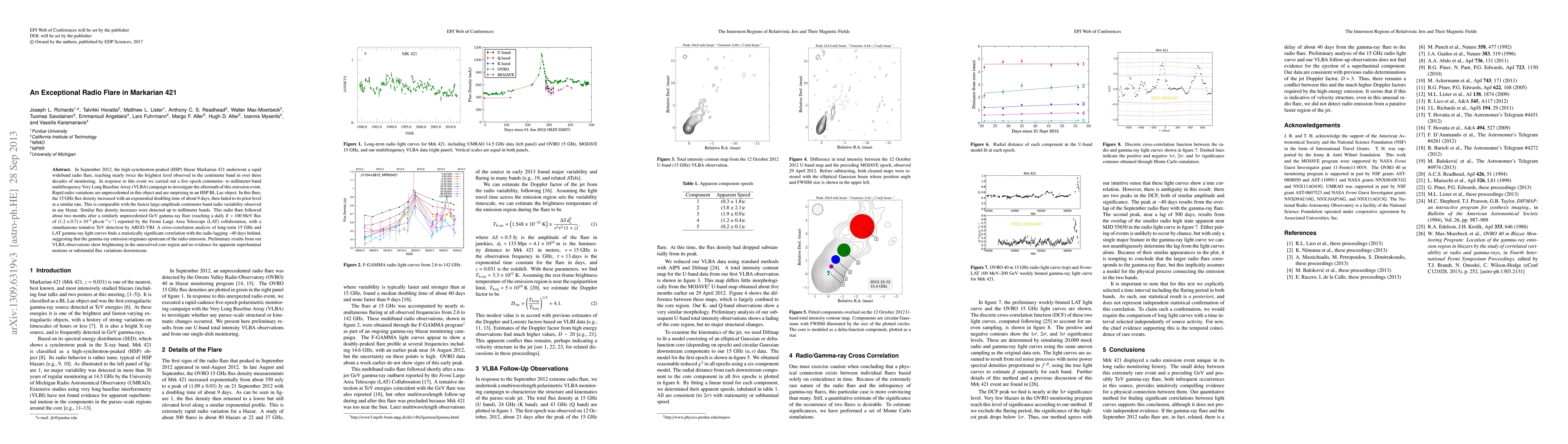 In September 2012, the blazar Markarian 421 exhibited an exceptional radio flare, nearly doubling its centimeter-band brightness in under a month. This rapid variability, unprecedented for a high-synchrotron-peaked (HSP) blazar, was also observed in millimeter bands. The flare followed a similar GeV gamma-ray flare detected by Fermi LAT, with radio emission lagging by about 40 days, suggesting gamma-ray emission originates upstream. VLBA observations revealed core region brightening with no apparent superluminal motions.