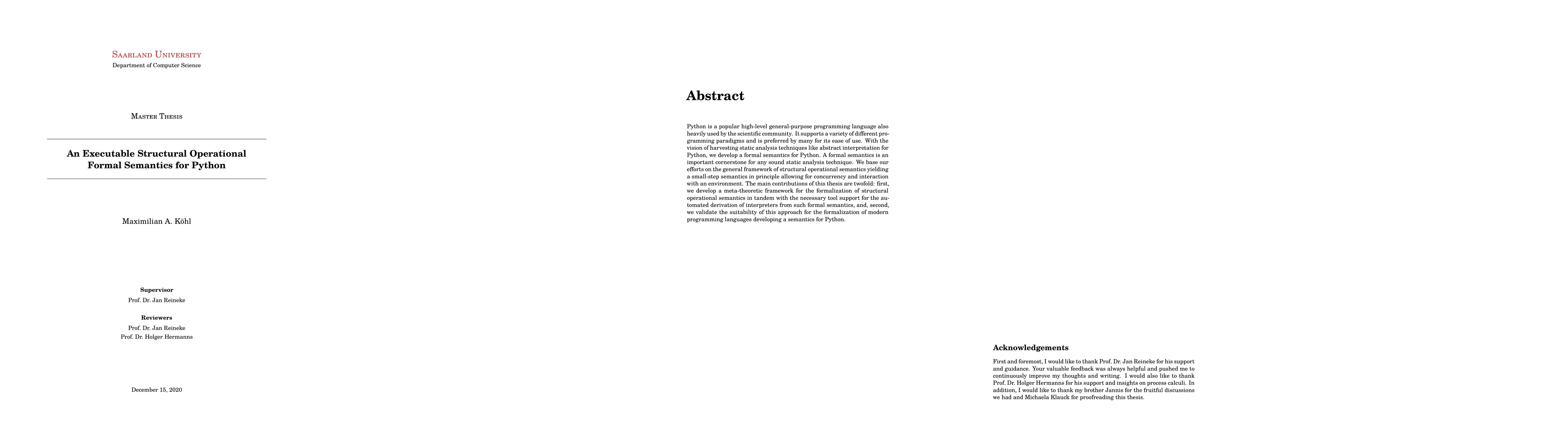 Python is a popular high-level general-purpose programming language also heavily used by the scientific community. It supports a variety of different programming paradigms and is preferred by many for its ease of use. With the vision of harvesting static analysis techniques like abstract interpretation for Python, we develop a formal semantics for Python. A formal semantics is an important cornerstone for any sound static analysis technique. We base our efforts on the general framework of structural operational semantics yielding a small-step semantics in principle allowing for concurrency and interaction with an environment. The main contributions of this thesis are twofold: first, we develop a meta-theoretic framework for the formalization of structural operational semantics in tandem with the necessary tool support for the automated derivation of interpreters from such formal semantics, and, second, we validate the suitability of this approach for the formalization of modern programming languages developing a semantics for Python.