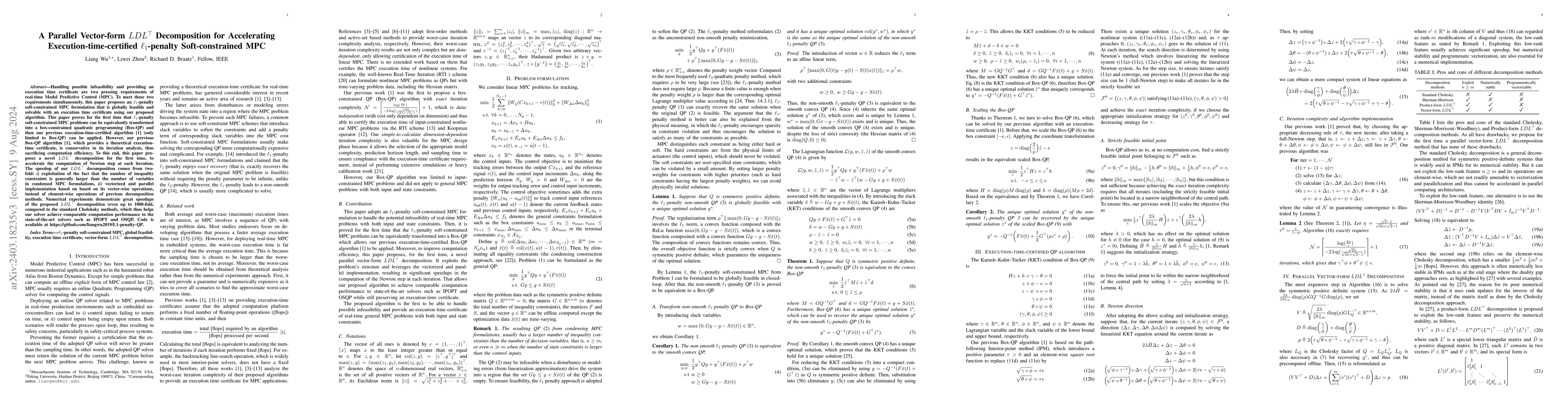 This paper proposes an $\ell_1$ penalty-based soft-constrained Model Predictive Control (MPC) algorithm that provides an execution time certificate and handles infeasibility. It transforms the non-smooth QP into a box-constrained QP, solving it with an exact number of iterations, extending the applicability beyond input-constrained MPC.