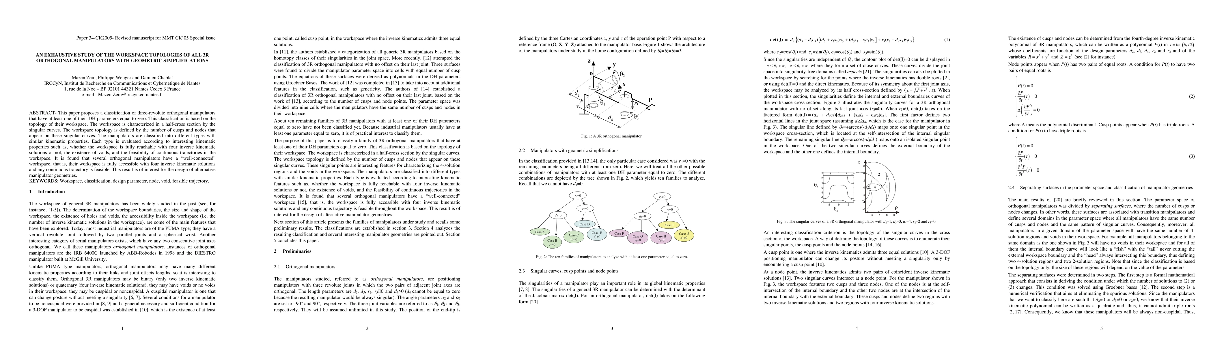 This paper classifies three-revolute orthogonal manipulators based on their workspace topology, identifying types with similar kinematic properties and evaluating their reachability and trajectory feasibility. It finds that several manipulators have fully accessible, well-connected workspaces, useful for designing alternative geometries.