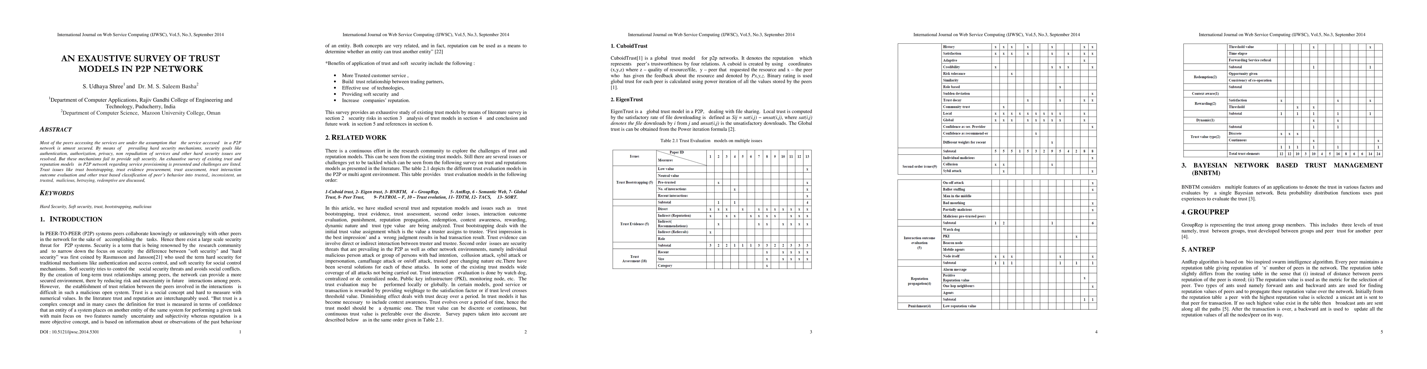 This paper provides a comprehensive survey of trust models in P2P networks, focusing on the challenges of soft security, including trust bootstrapping and assessment. It discusses various trust-based classifications of peer behavior and outlines the existing issues in service provisioning and reputation management.