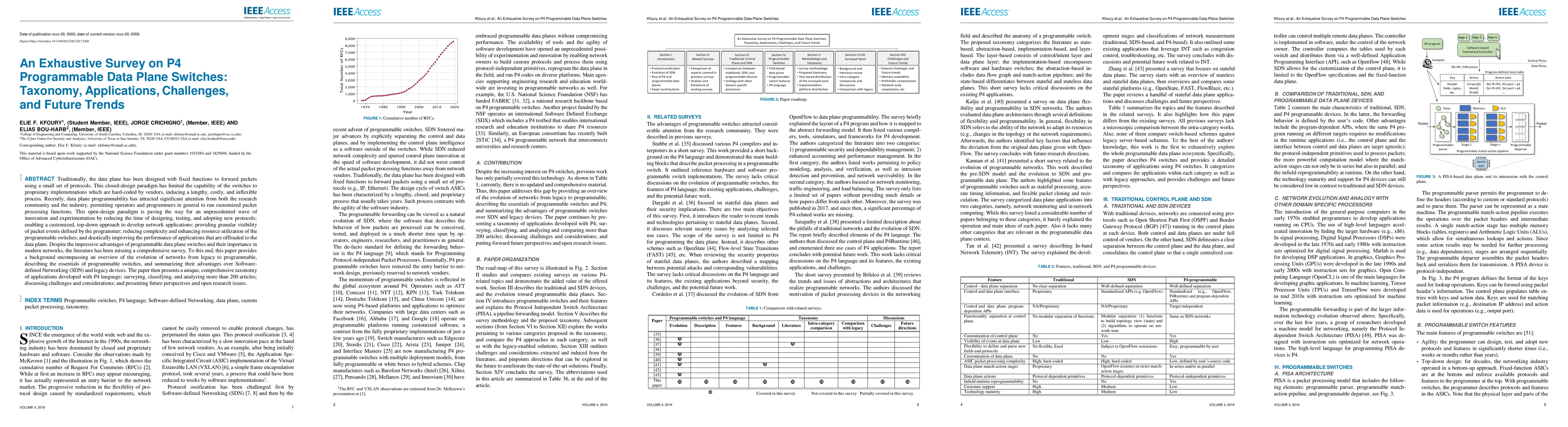 This paper provides an exhaustive survey on P4 programmable data plane switches, detailing their evolution, taxonomy, applications, and challenges. It highlights the advantages of programmability over traditional SDN and legacy devices, and discusses future trends and open research issues based on an analysis of over 150 articles.