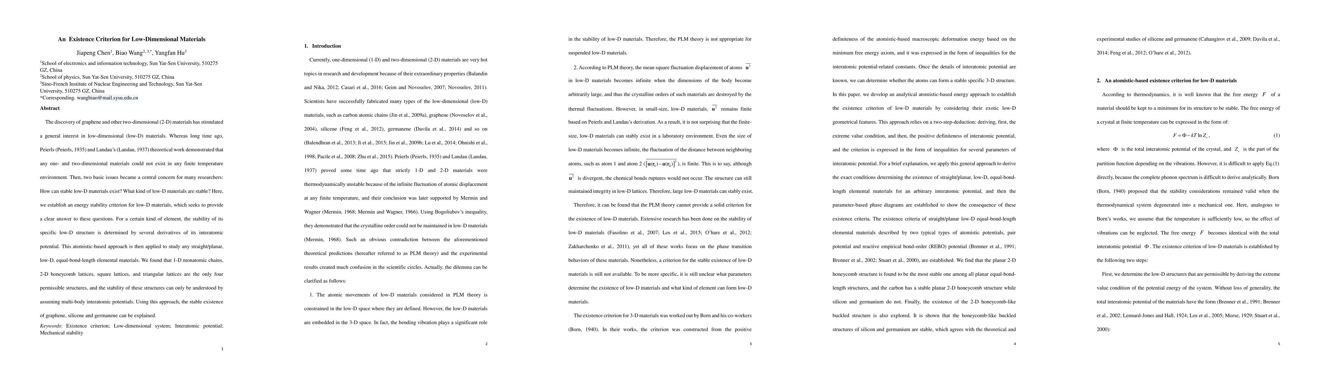 Researchers established an energy stability criterion for low-dimensional materials, identifying four permissible structures (1-D chains, 2-D honeycomb lattices, square and triangular lattices) that can exist stably under multi-body interatomic potentials.