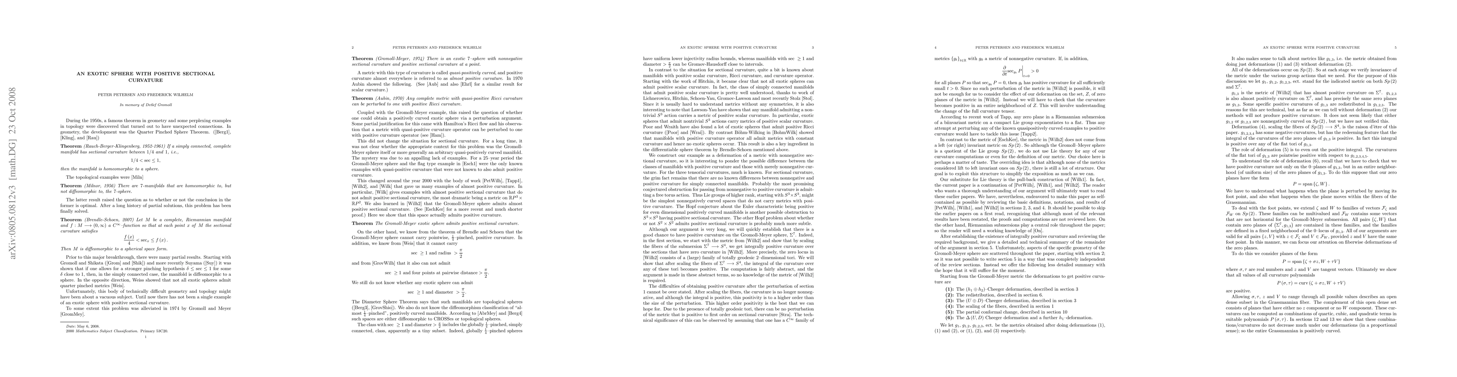 This paper demonstrates the existence of a metric on the Gromoll-Meyer sphere that achieves positive sectional curvature, challenging the sphere's typical negative curvature characteristics. The result provides a novel geometric perspective on this exotic sphere.