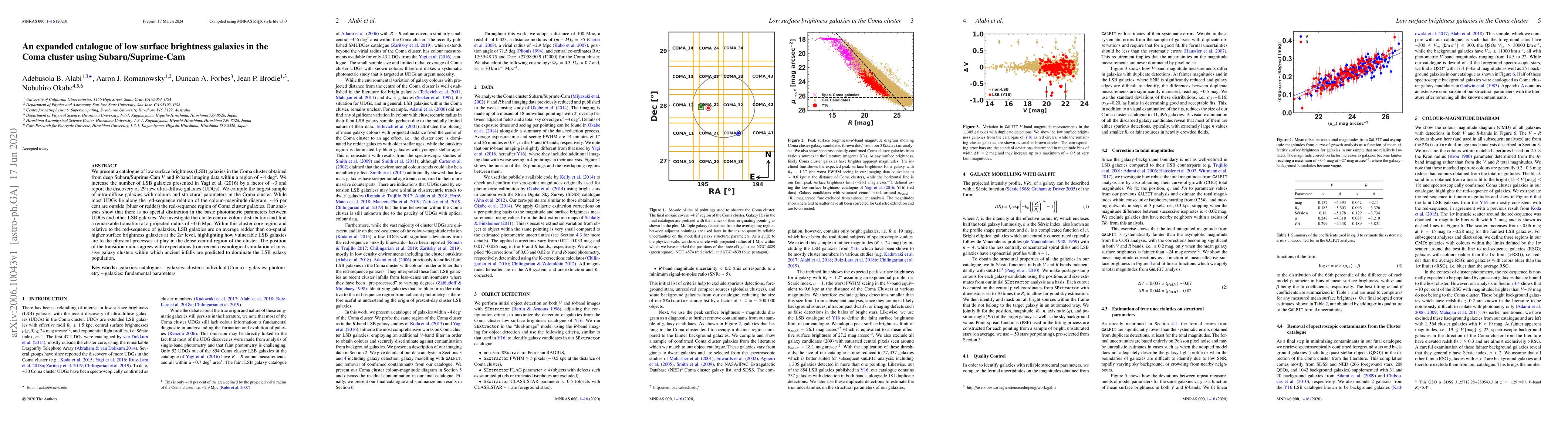 This paper presents an expanded catalogue of low surface brightness galaxies in the Coma cluster, significantly increasing the number of ultra-diffuse galaxies by a factor of three using Subaru/Suprime-Cam imaging. It highlights the vulnerability of these galaxies to physical processes in the dense central region of the cluster, with a notable transition in colour distribution at a projected radius of 0.6 Mpc.