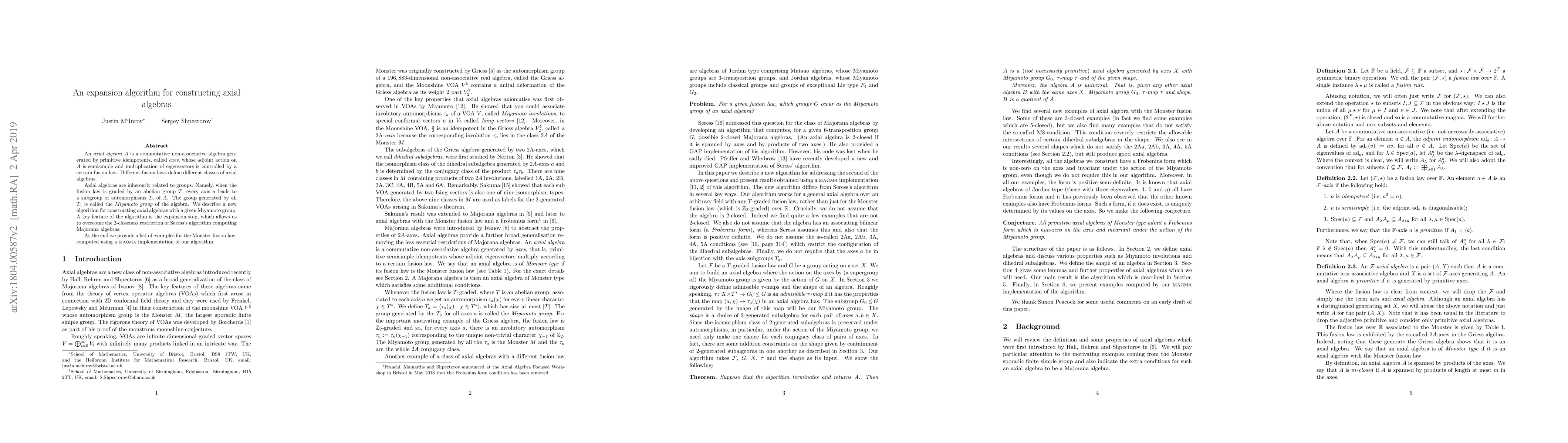 An axial algebra $A$ is a commutative non-associative algebra generated by primitive idempotents, called axes, whose adjoint action on $A$ is semisimple and multiplication of eigenvectors is controlled by a certain fusion law. Different fusion laws define different classes of axial algebras. Axial algebras are inherently related to groups. Namely, when the fusion law is graded by an abelian group $T$, every axis $a$ leads to a subgroup of automorphisms $T_a$ of $A$. The group generated by all $T_a$ is called the Miyamoto group of the algebra. We describe a new algorithm for constructing axial algebras with a given Miyamoto group. A key feature of the algorithm is the expansion step, which allows us to overcome the $2$-closeness restriction of Seress's algorithm computing Majorana algebras. At the end we provide a list of examples for the Monster fusion law, computed using a MAGMA implementation of our algorithm.