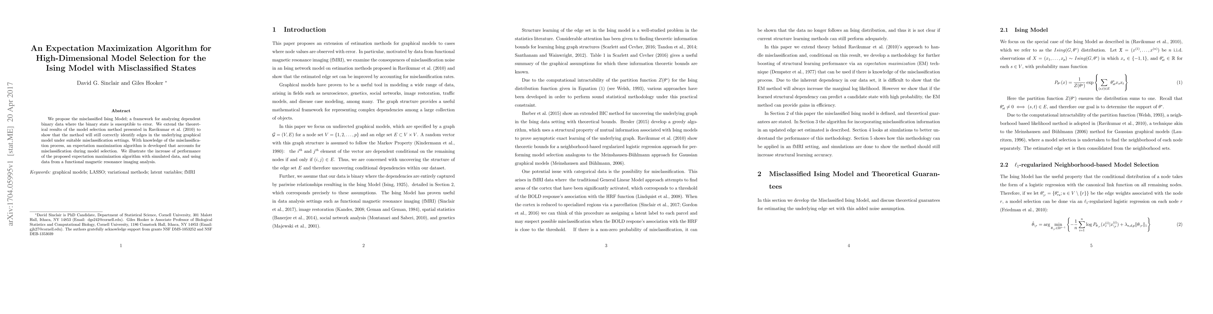 We propose the misclassified Ising Model; a framework for analyzing dependent binary data where the binary state is susceptible to error. We extend the theoretical results of the model selection method presented in Ravikumar et. al. (2010) to show that the method will still correctly identify edges in the underlying graphical model under suitable misclassification settings. With knowledge of the misclassification process, an expectation maximization algorithm is developed that accounts for misclassification during model selection. We illustrate the increase of performance of the proposed expectation maximization algorithm with simulated data, and using data from a functional magnetic resonance imaging analysis.