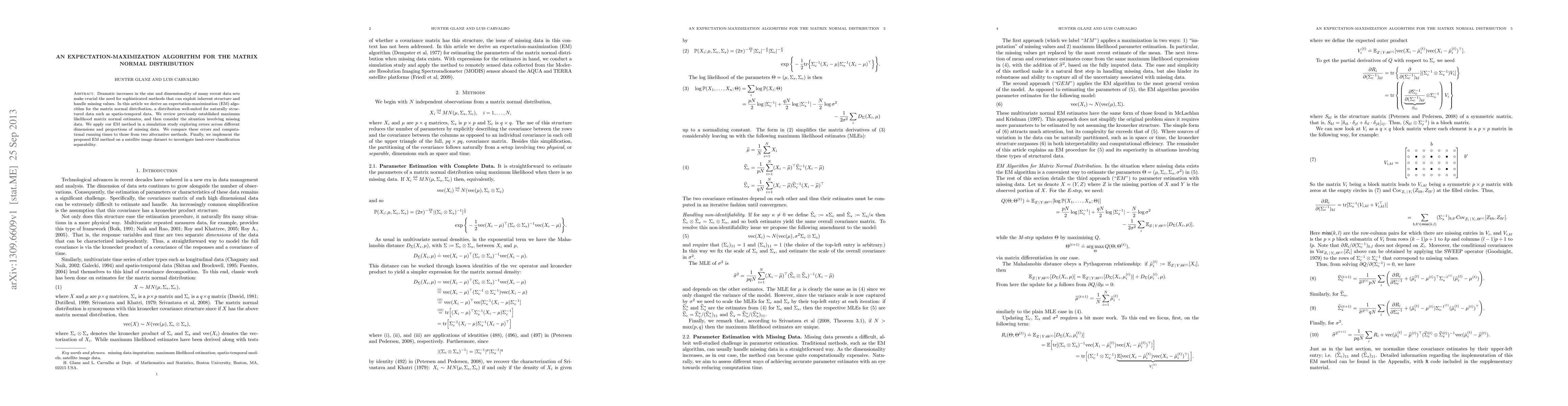 A new Expectation-Maximization algorithm is introduced for estimating the matrix normal distribution in data with missing values, offering improved performance over existing methods for high-dimensional datasets.