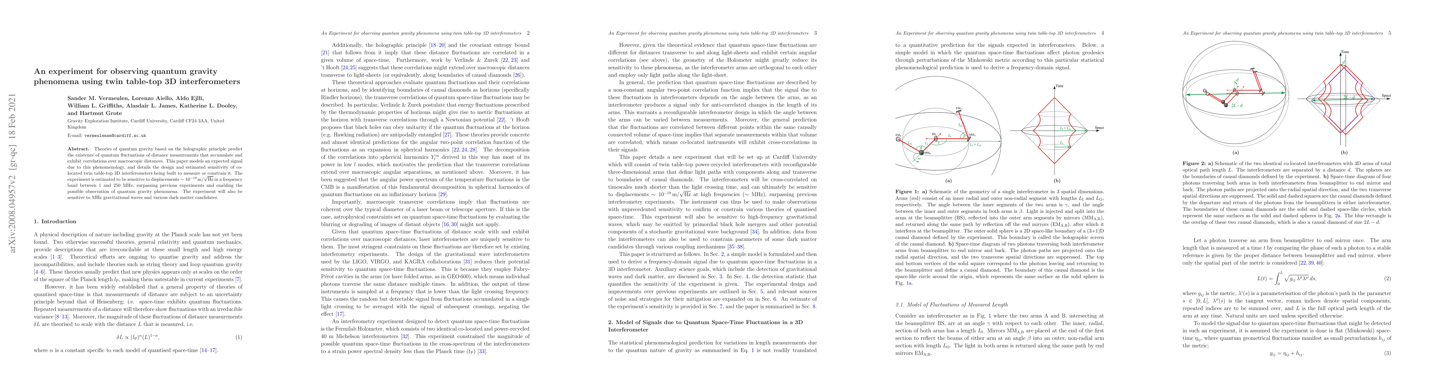 Theories of quantum gravity based on the holographic principle predict the existence of quantum fluctuations of distance measurements that accumulate and exhibit correlations over macroscopic distances. This paper models an expected signal due to this phenomenology, and details the design and estimated sensitivity of co-located twin table-top 3D interferometers being built to measure or constrain it. The experiment is estimated to be sensitive to displacements $\sim10^{-19}\,\rm{m}/\sqrt{\rm{Hz}}$ in a frequency band between 1 and 250 MHz, surpassing previous experiments and enabling the possible observation of quantum gravity phenomena. The experiment will also be sensitive to MHz gravitational waves and various dark matter candidates.