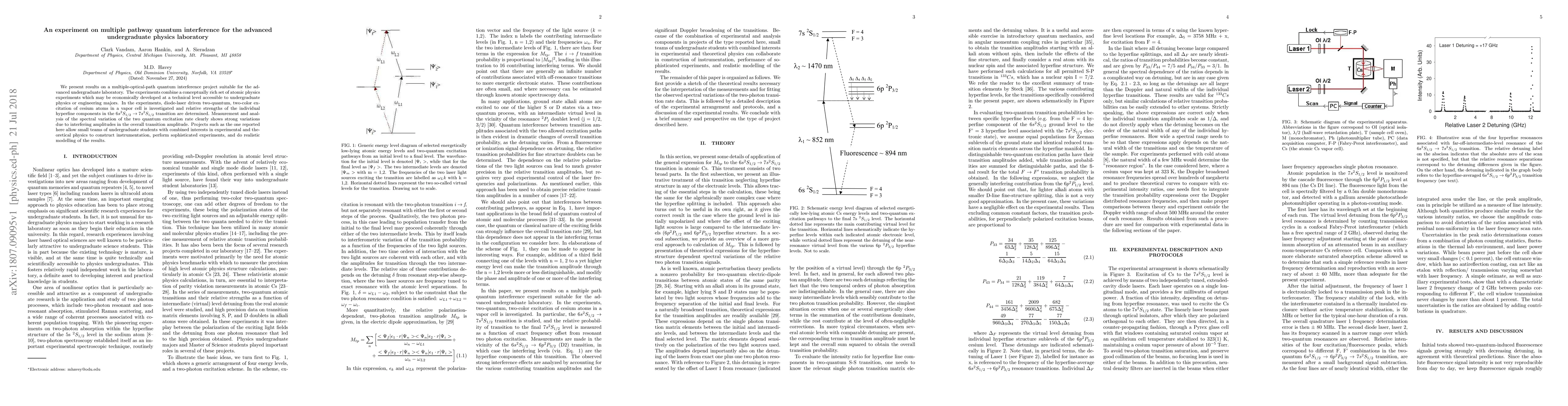 Researchers created a laboratory experiment to study quantum interference in atomic physics, using diode lasers to excite cesium atoms and measure the effects of multiple optical paths on the transition amplitude. The results show strong variations in the excitation rate due to interfering amplitudes, enabling undergraduate students to conduct sophisticated experiments and realistic modeling.