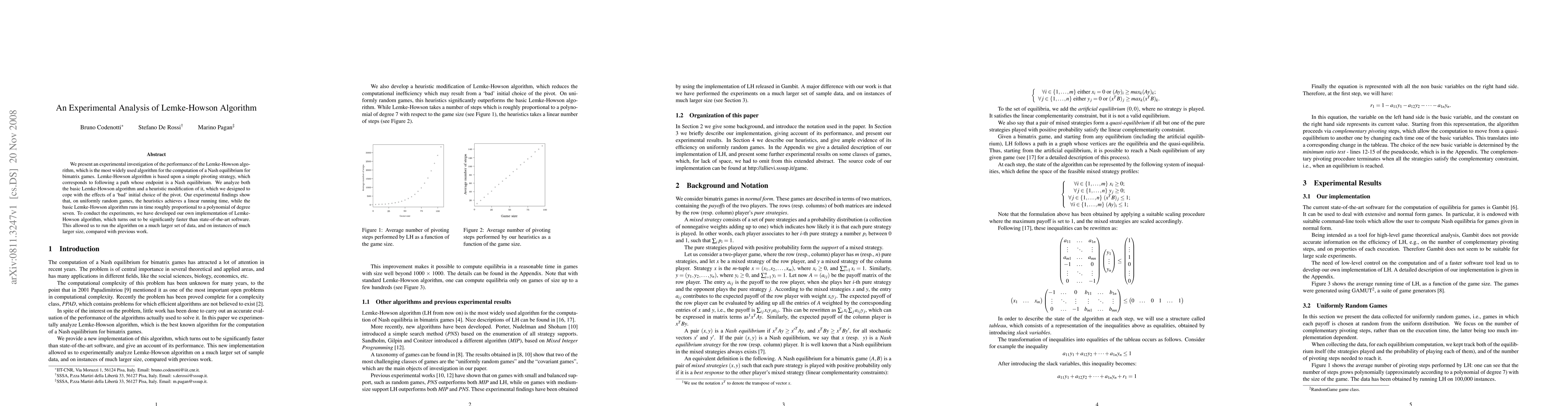 This paper investigates the performance of the Lemke-Howson algorithm for computing Nash equilibria in bimatrix games, comparing its basic form with a heuristic modification. The experiments reveal that the heuristic version runs linearly on random games, while the basic algorithm has a polynomial time complexity of degree seven.