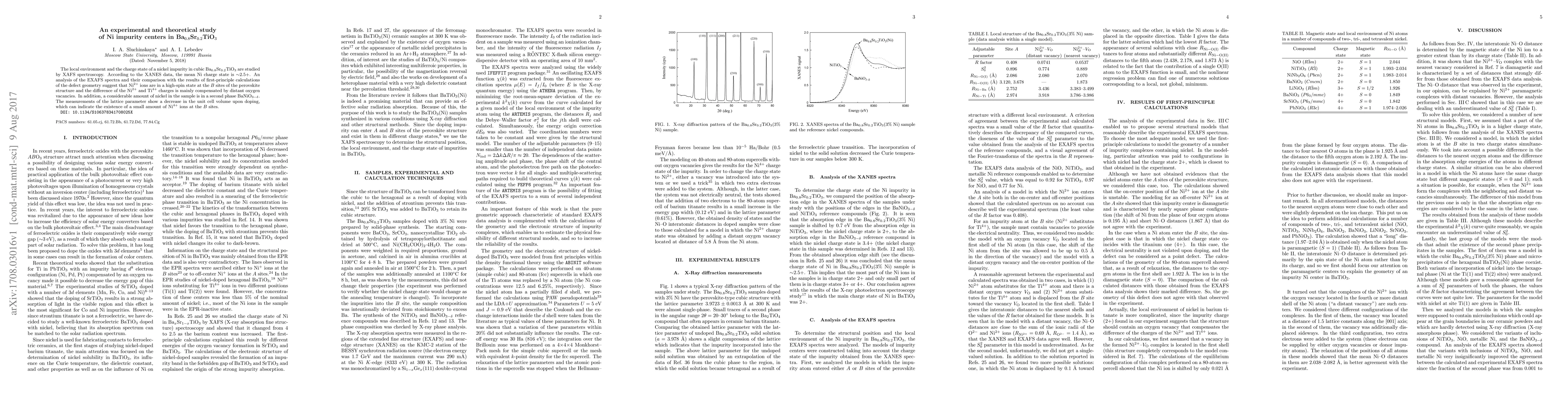 Researchers studied nickel impurities in a specific type of ceramic material, finding that nickel ions often have a high-spin state and can compensate for charge imbalances with oxygen vacancies. The study provides insight into the behavior of nickel impurities in perovskite structures.