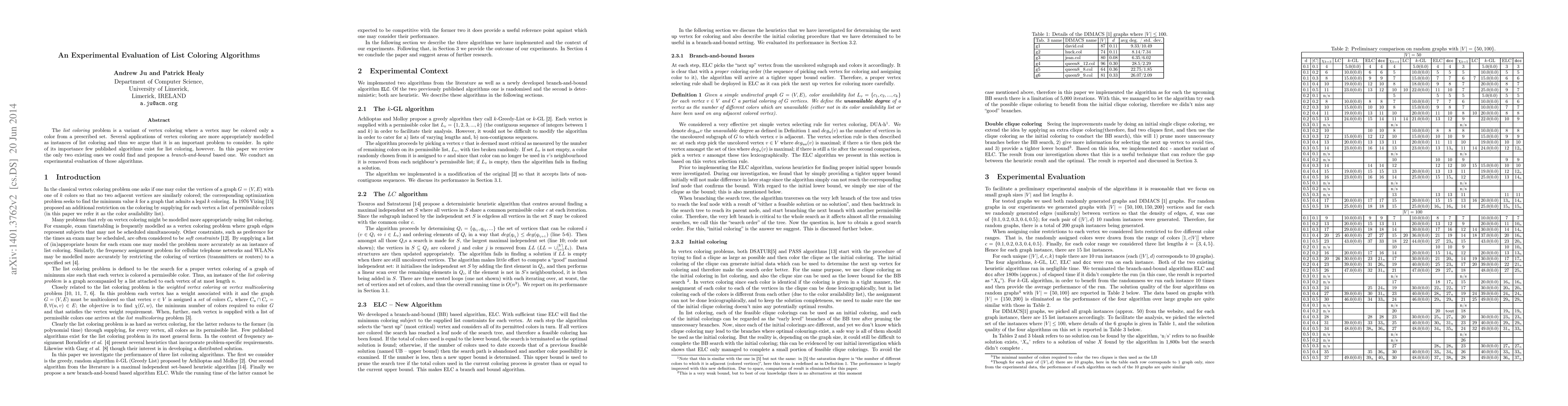 This paper reviews existing list coloring algorithms and proposes a new exact branch and bound method. An experimental evaluation compares the performance of this new algorithm with the existing ones.