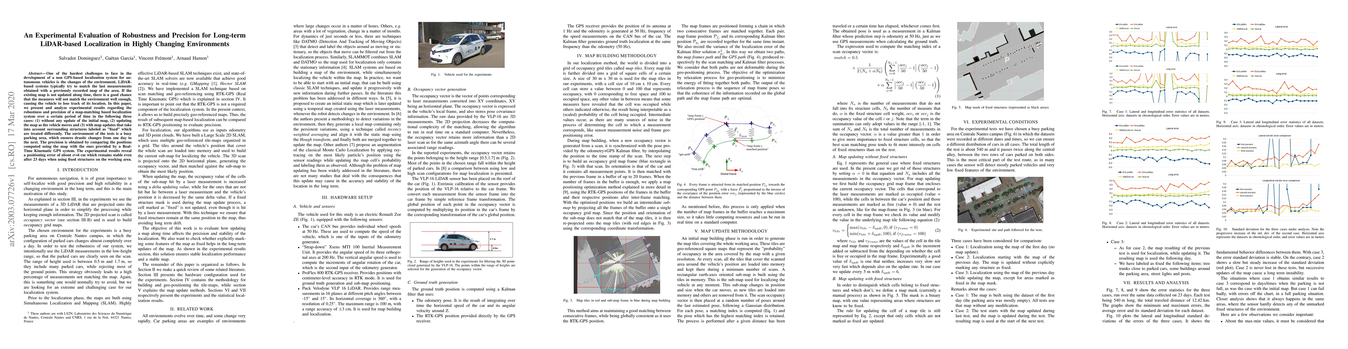 One of the hardest challenges to face in the development of a non GPS-based localization system for autonomous vehicles is the changes of the environment. LiDAR-based systems typically try to match the last measurements obtained with a previously recorded map of the area. If the existing map is not updated along time, there is a good chance that the measures will not match the environment well enough, causing the vehicle to lose track of its location. In this paper, we present and analyze experimental results regarding the robustness and precision of a map-matching based localization system over a certain period of time in the following three cases: (1) without any update of the initial map, (2) updating the map as the vehicle moves and (3) with map updates that take into account surrounding structures labeled as "fixed" which are treated differently. The environment of the tests is a busy parking area, which ensures drastic changes from one day to the next. The precision is obtained by comparing the positions computed using the map with the ones provided by a Real-Time Kinematic GPS system. The experimental results reveal a positioning error of about 6cm which remains stable even after 23 days when using fixed structures on the working area.