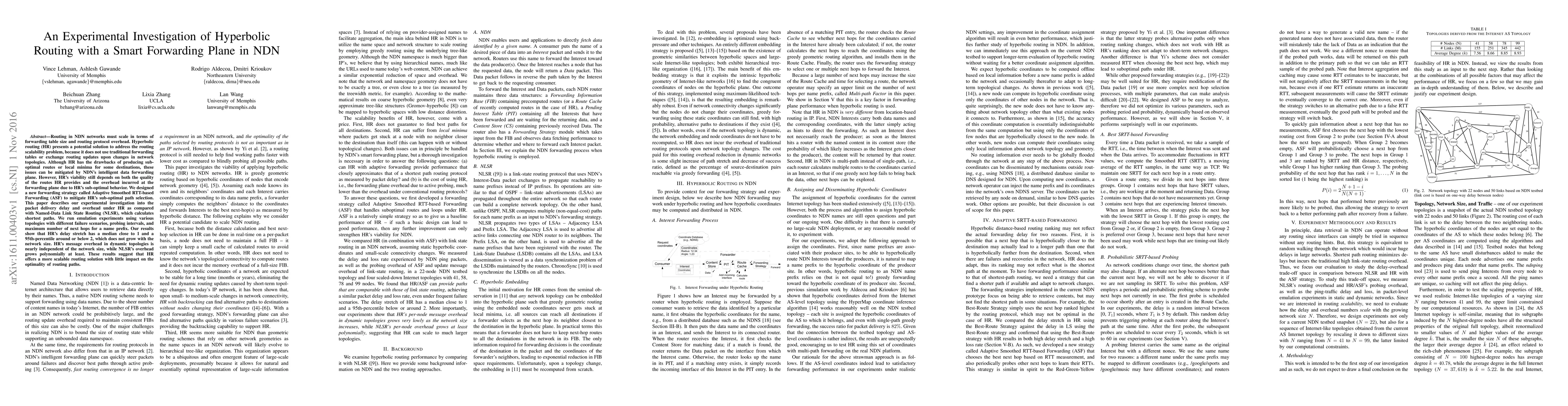 This paper investigates hyperbolic routing (HR) in NDN networks, proposing Adaptive Smoothed RTT-based Forwarding (ASF) to mitigate HR's sub-optimal paths. Experimental results show HR's delay stretch remains manageable and its overhead scales better than Named-Data Link State Routing, indicating HR as a scalable routing solution.