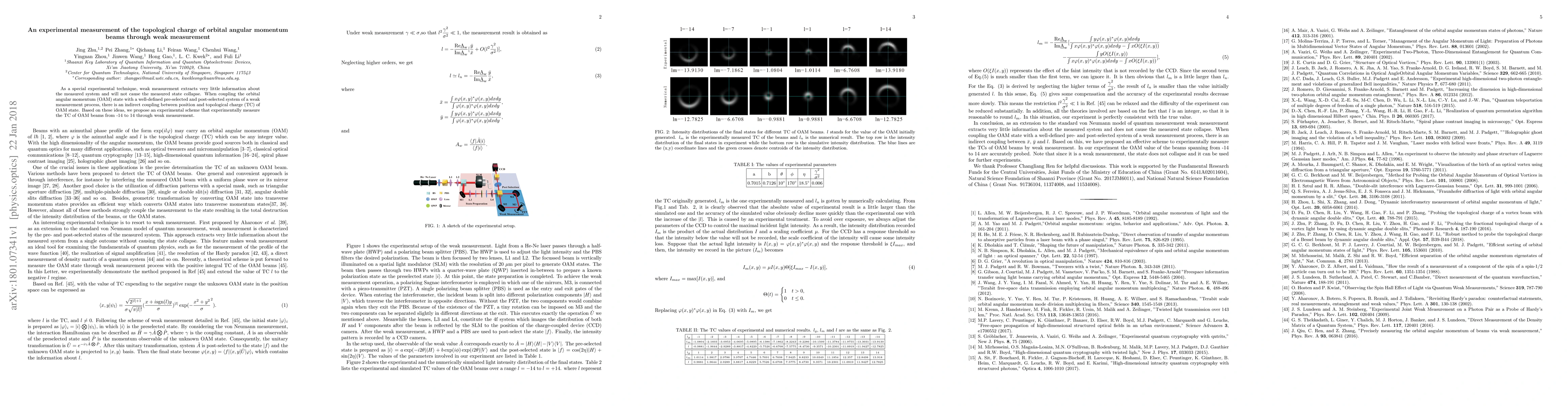 Researchers propose an experimental scheme to measure topological charge of orbital angular momentum beams using weak measurement, allowing for the detection of topological charges from -14 to 14.
