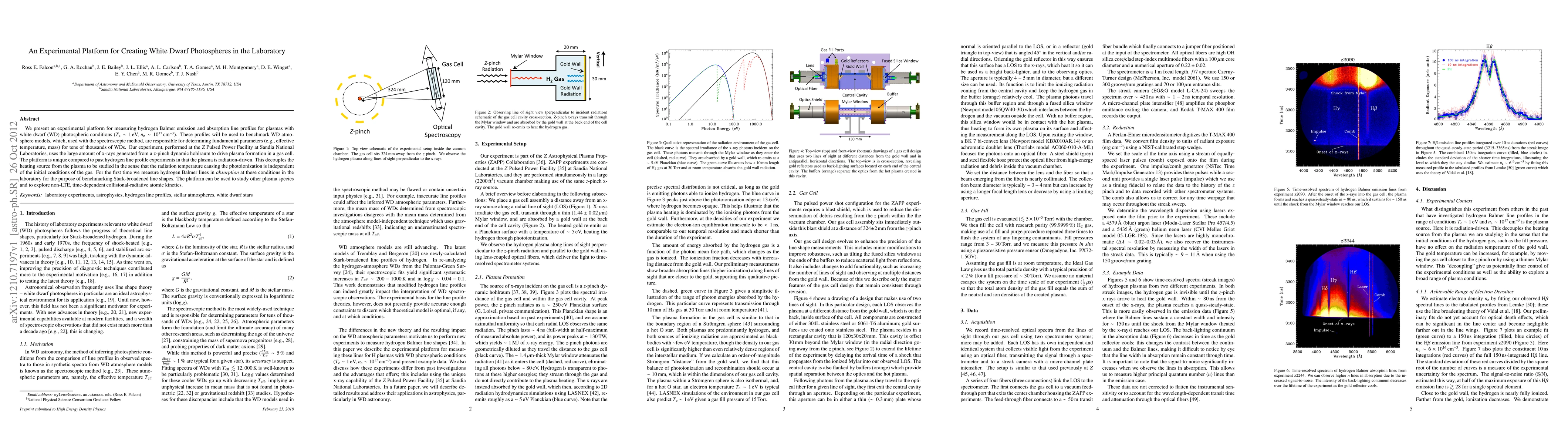 This paper introduces an experimental platform at Sandia National Laboratories to simulate white dwarf photospheric conditions, enabling the measurement of hydrogen Balmer emission and absorption line profiles. The platform, driven by x-rays from a z-pinch dynamic hohlraum, aims to benchmark models of WD atmospheres and determine fundamental parameters for numerous white dwarfs.