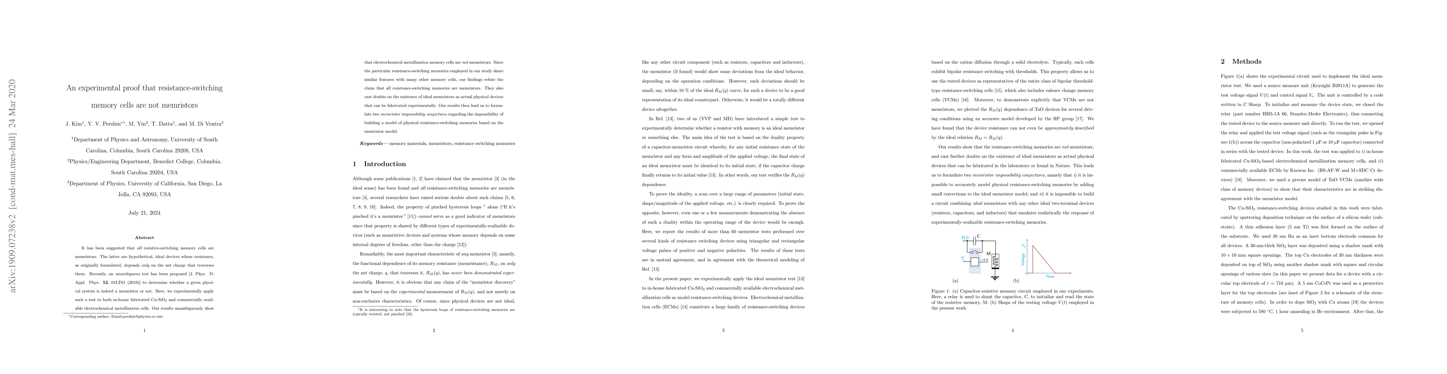 This study experimentally disproves the notion that resistance-switching memory cells are memristors by applying a specific test to Cu-SiO2 and electrochemical metallization cells, revealing they do not conform to memristor behavior. The findings challenge the idea that all resistive-switching memories are memristors and suggest the non-existence of ideal memristors in physical form.