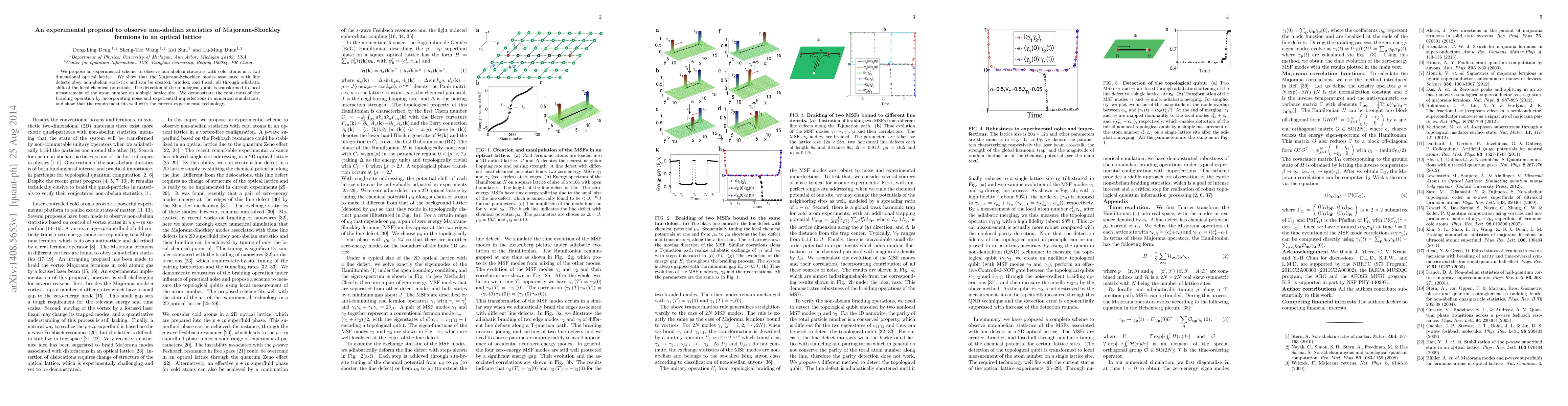 This paper proposes an experimental method to observe non-abelian statistics of Majorana-Shockley fermions using cold atoms in an optical lattice. The scheme involves creating, braiding, and fusing these fermions through local chemical potential shifts, with detection via atom number measurement on a single lattice site.