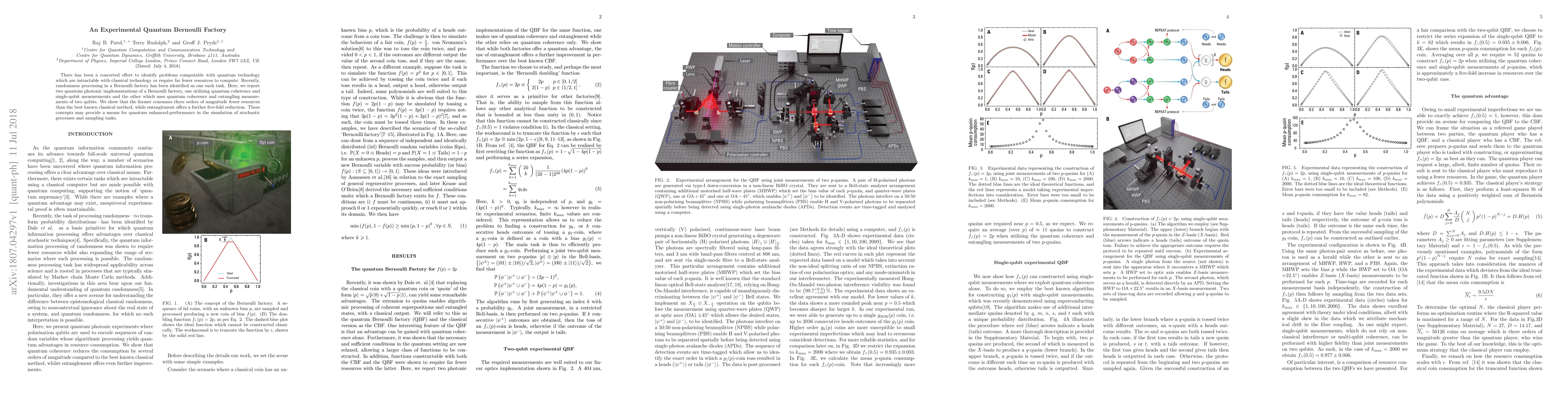 There has been a concerted effort to identify problems computable with quantum technology which are intractable with classical technology or require far fewer resources to compute. Recently, randomness processing in a Bernoulli factory has been identified as one such task. Here, we report two quantum photonic implementations of a Bernoulli factory, one utilising quantum coherence and single-qubit measurements and the other which uses quantum coherence and entangling measurements of two qubits. We show that the former consumes three orders of magnitude fewer resources than the best known classical method, while entanglement offers a further five-fold reduction. These concepts may provide a means for quantum enhanced-performance in the simulation of stochastic processes and sampling tasks.