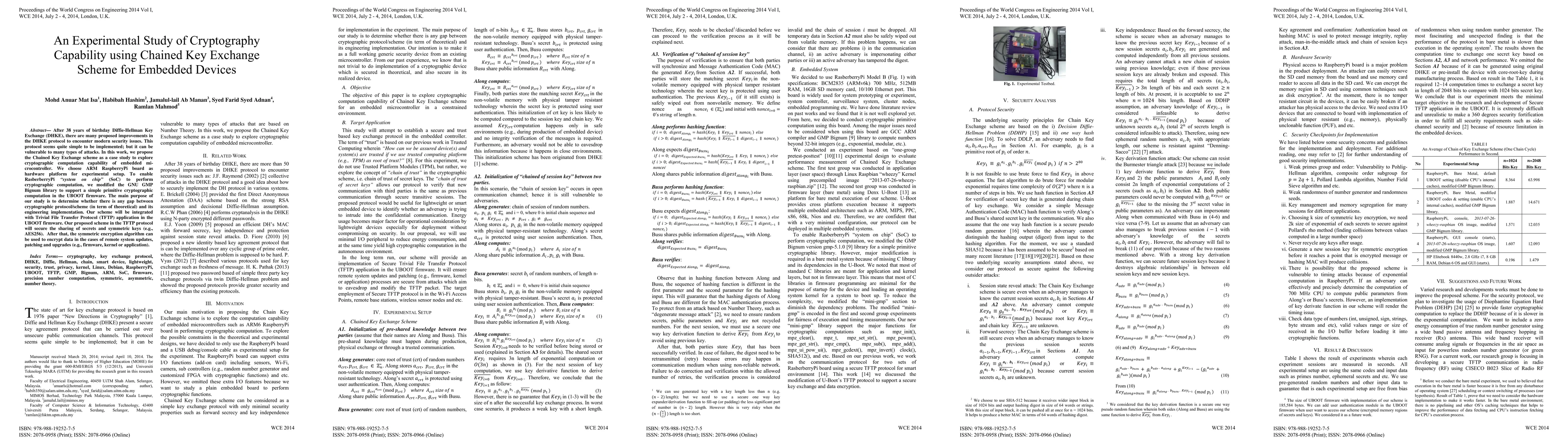 After 38 years of birthday Diffie-Hellman Key Exchange (DHKE), there are many proposed improvements in the DHKE protocol to encounter modern security issues. This protocol seems quite simple to be implemented, but it can be vulnerable to many types of attacks. In this work, we propose the Chained Key Exchange scheme as a case study to explore cryptographic computation capability of embedded microcontroller. We choose ARM RaspberryPi board as hardware platform for experimental setup. To enable RasberberryPi system on chip (SoC) to perform cryptographic computation, we modified the GNU GMP Bignum library to support a simple primitive cryptographic computation in the UBOOT firmware. The main purpose of our study is to determine whether there is any gap between cryptographic protocol-scheme (in term of theoretical) and its engineering implementation. Our scheme will be integrated with Trivial File Transfer Protocol (TFTP) application in the UBOOT firmware. Our proposed scheme in the TFTP protocol will secure the sharing of secrets and symmetric keys (e.g., AES256). After that, the symmetric encryption algorithm can be used to encrypt data in the cases of remote system updates, patching and upgrades (e.g., firmware, kernel or application).
