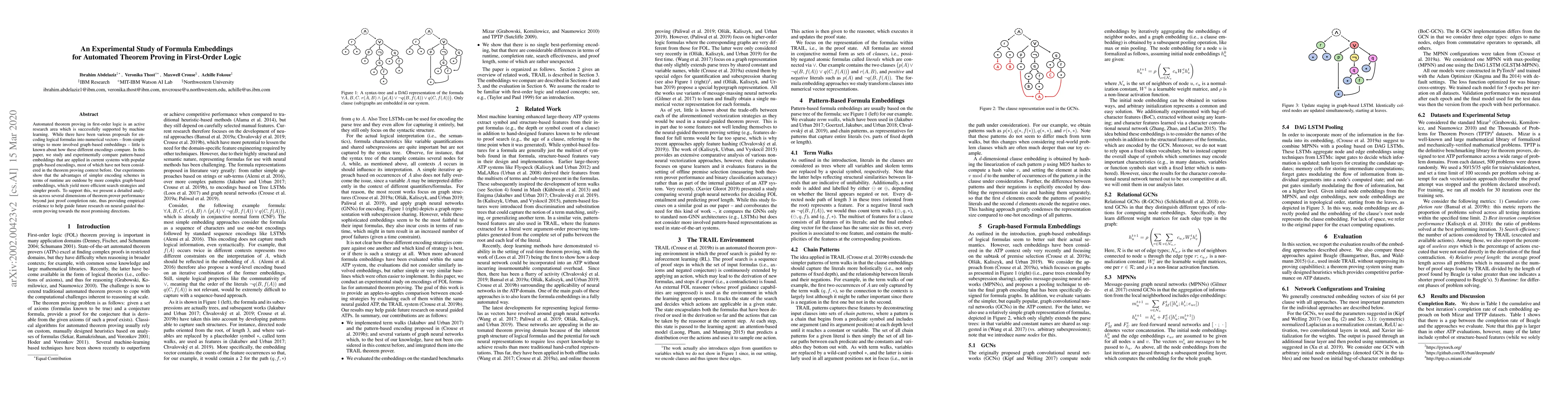 This paper compares various formula embeddings for automated theorem proving in first-order logic, finding that complex graph-based embeddings outperform simpler pattern-based ones in terms of search efficiency and proof simplicity, despite higher runtimes. The study provides a comprehensive analysis to guide future research on neural-guided theorem proving.