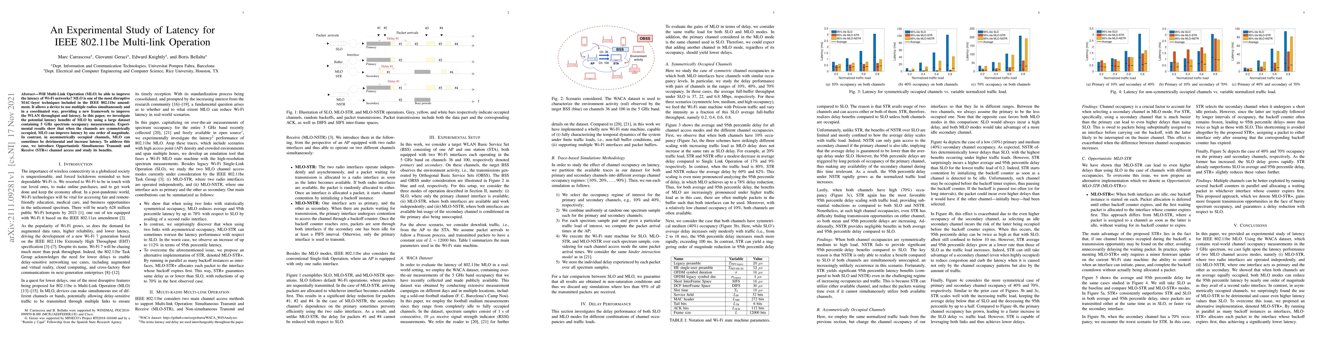 Will Multi-Link Operation (MLO) be able to improve the latency of Wi-Fi networks? MLO is one of the most disruptive MAC-layer techniques included in the IEEE 802.11be amendment. It allows a device to use multiple radios simultaneously and in a coordinated way, providing a new framework to improve the WLAN throughput and latency. In this paper, we investigate the potential latency benefits of MLO by using a large dataset containing 5 GHz spectrum occupancy measurements. Experimental results show that when the channels are symmetrically occupied, MLO can improve latency by one order of magnitude. In contrast, in asymmetrically occupied channels, MLO can sometimes be detrimental and increase latency. To address this case, we introduce Opportunistic Simultaneous Transmit and Receive (STR+) channel access and study its benefits.
