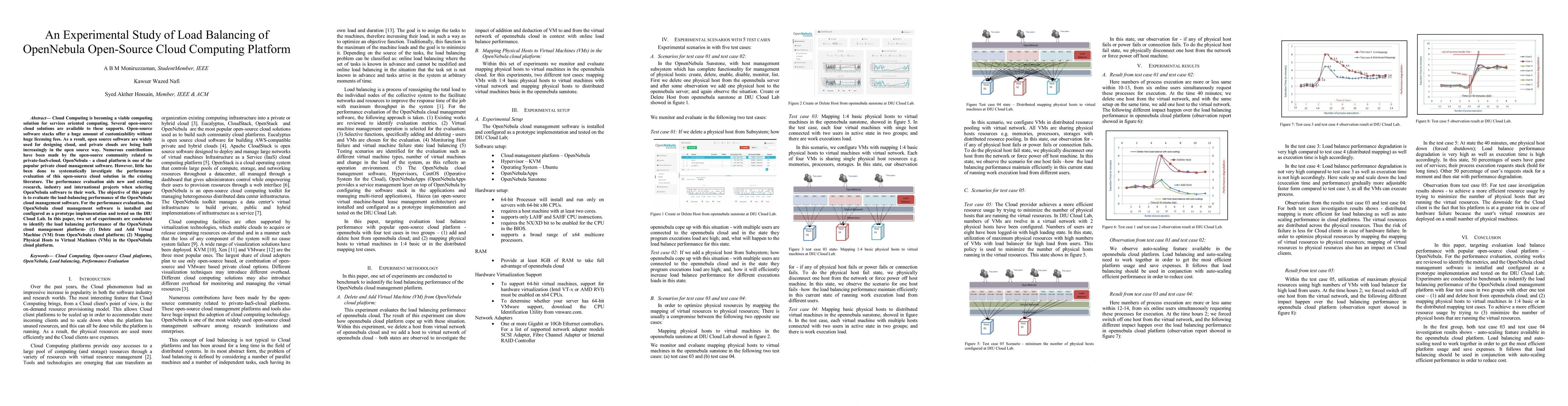 This paper evaluates the load-balancing performance of OpenNebula, an open-source cloud management software, through experiments conducted on the DIU Cloud Lab. The study investigates two scenarios: the deletion and addition of virtual machines, and the mapping of physical hosts to virtual machines.