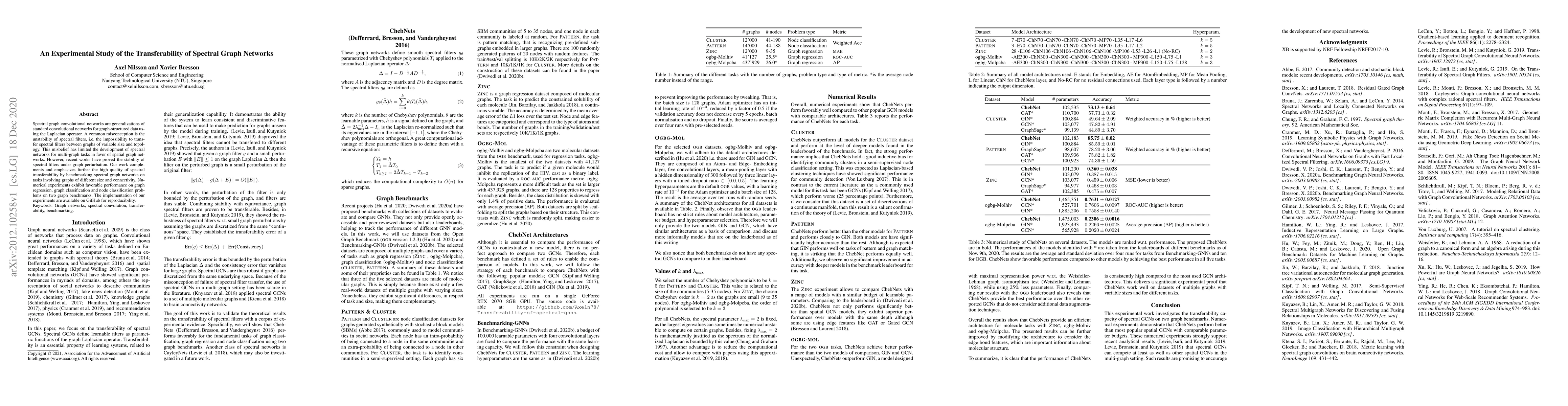 Spectral graph convolutional networks are generalizations of standard convolutional networks for graph-structured data using the Laplacian operator. A common misconception is the instability of spectral filters, i.e. the impossibility to transfer spectral filters between graphs of variable size and topology. This misbelief has limited the development of spectral networks for multi-graph tasks in favor of spatial graph networks. However, recent works have proved the stability of spectral filters under graph perturbation. Our work complements and emphasizes further the high quality of spectral transferability by benchmarking spectral graph networks on tasks involving graphs of different size and connectivity. Numerical experiments exhibit favorable performance on graph regression, graph classification, and node classification problems on two graph benchmarks. The implementation of our experiments is available on GitHub for reproducibility.