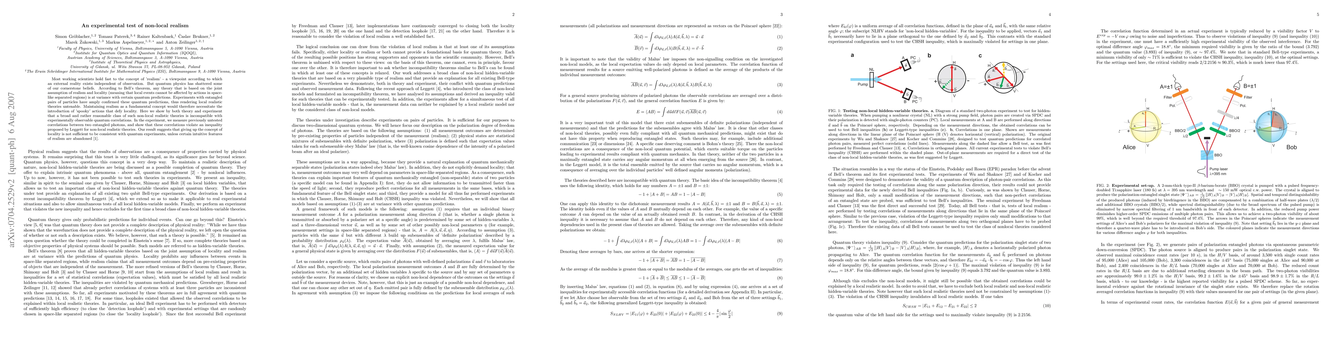 This paper tests non-local realism against quantum predictions, demonstrating through both theory and experiment that non-local realistic theories fail to match observed quantum correlations. The experiment shows that these correlations violate a Leggett inequality, suggesting that even non-local realism cannot fully reconcile with quantum mechanics unless certain intuitive aspects of realism are abandoned.