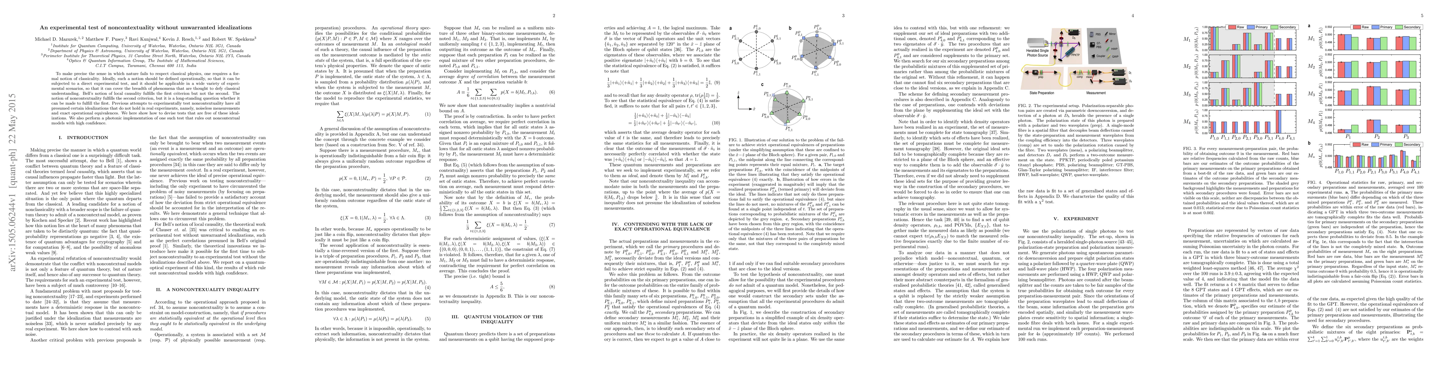 To make precise the sense in which nature fails to respect classical physics, one requires a formal notion of classicality. Ideally, such a notion should be defined operationally, so that it can be subjected to a direct experimental test, and it should be applicable in a wide variety of experimental scenarios, so that it can cover the breadth of phenomena that are thought to defy classical understanding. Bell's notion of local causality fulfills the first criterion but not the second. The notion of noncontextuality fulfills the second criterion, but it is a long-standing question whether it can be made to fulfill the first. Previous attempts to experimentally test noncontextuality have all presumed certain idealizations that do not hold in real experiments, namely, noiseless measurements and exact operational equivalences. We here show how to devise tests that are free of these idealizations. We also perform a photonic implementation of one such test that rules out noncontextual models with high confidence.