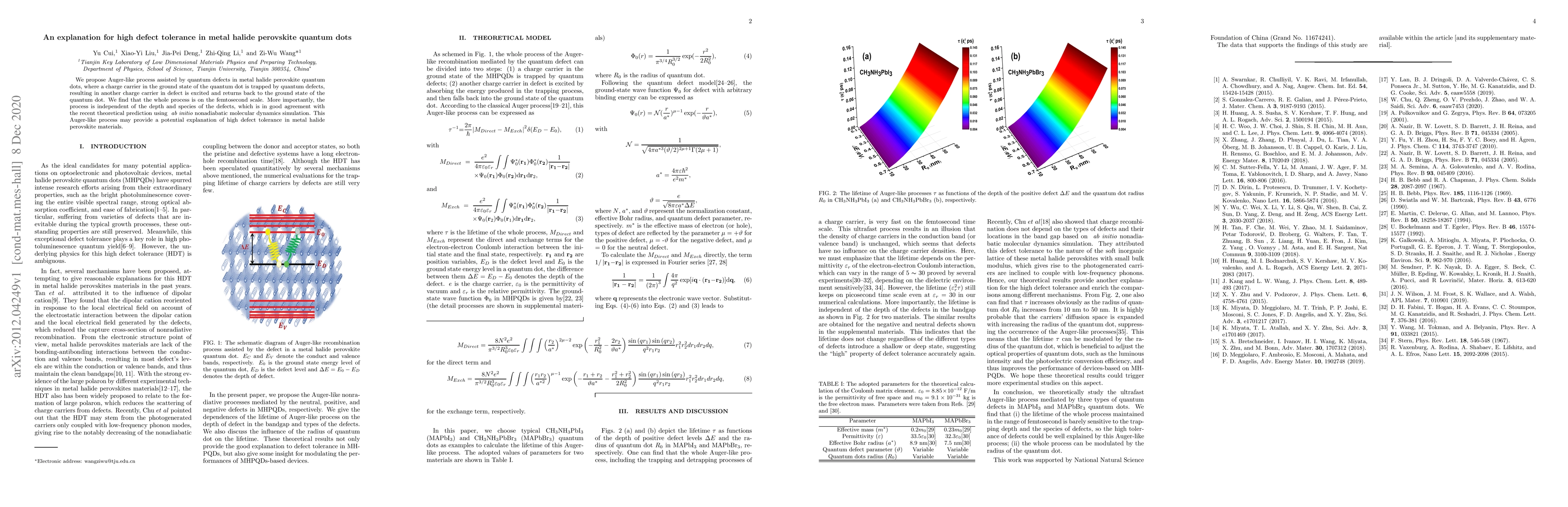 This paper proposes an Auger-like process facilitated by quantum defects in metal halide perovskite quantum dots, which explains high defect tolerance. The process occurs on a femtosecond scale and is independent of defect depth and species, aligning with recent theoretical predictions.