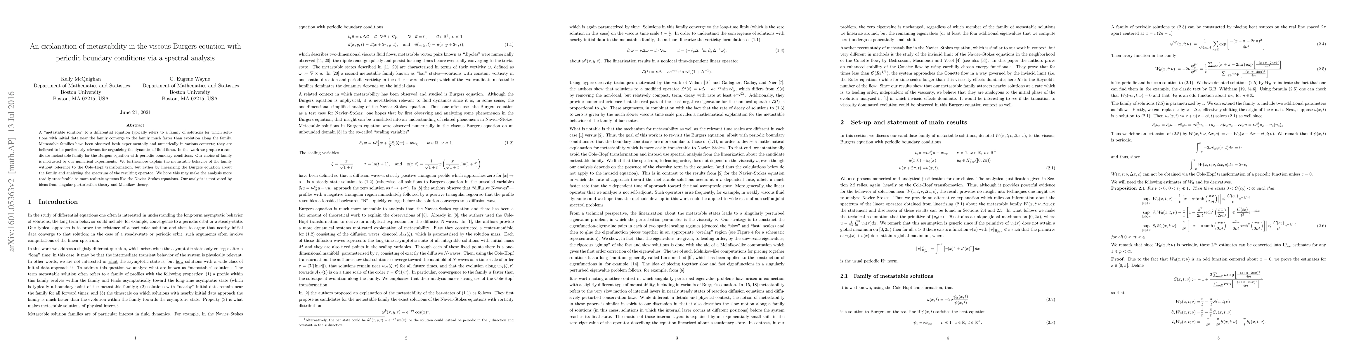 Researchers identify a metastable solution family for the Burgers equation with periodic boundary conditions through spectral analysis, shedding light on fluid flow dynamics and potential applicability to the Navier-Stokes equations.