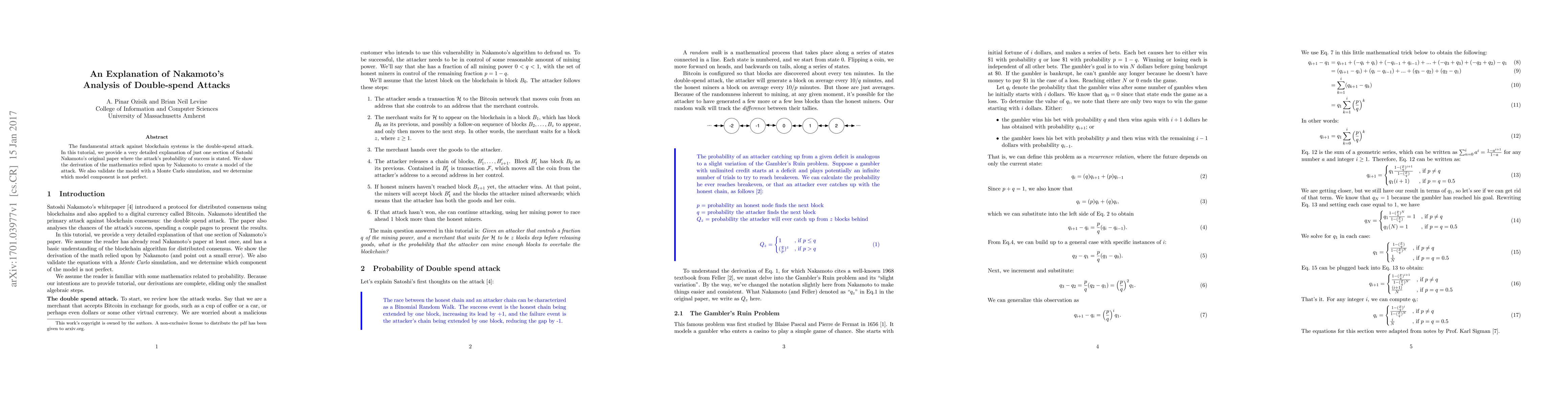 The fundamental attack against blockchain systems is the double-spend attack. In this tutorial, we provide a very detailed explanation of just one section of Satoshi Nakamoto's original paper where the attack's probability of success is stated. We show the derivation of the mathematics relied upon by Nakamoto to create a model of the attack. We also validate the model with a Monte Carlo simulation, and we determine which model component is not perfect.